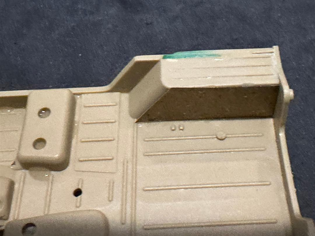 I tried first just seeing how fine I could scoop them out. Not very. You can also see from this photo there’s also a dished out portion in each wheel well toward the front. No kit replicates this. (yet) The dished out portion looks horrible right now, but will smooth out with some creative sanding - I’ve done it before. But I was not happy with the results of the ribs, so it looks like I’ll have to resort to using brass. I can cover up my mistakes with it as well, so I wasn’t too worried.