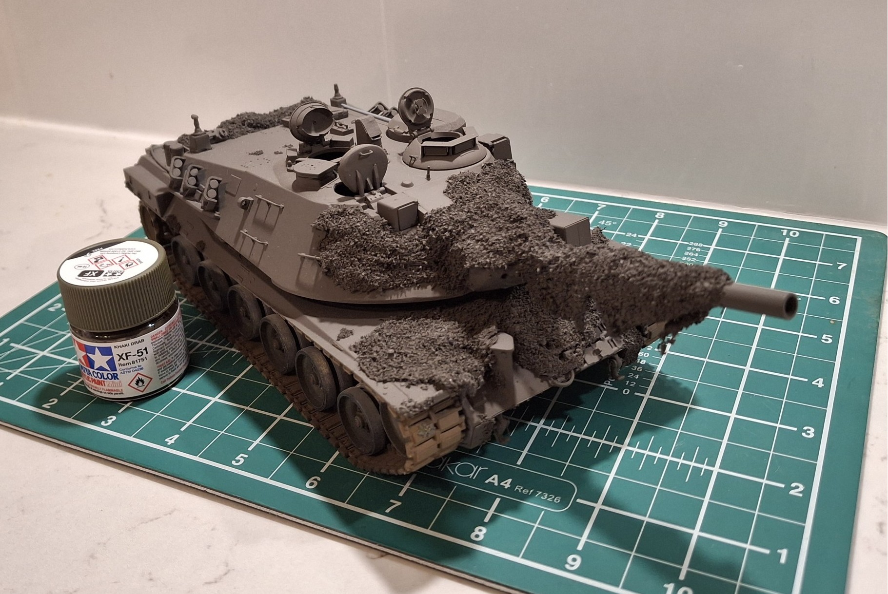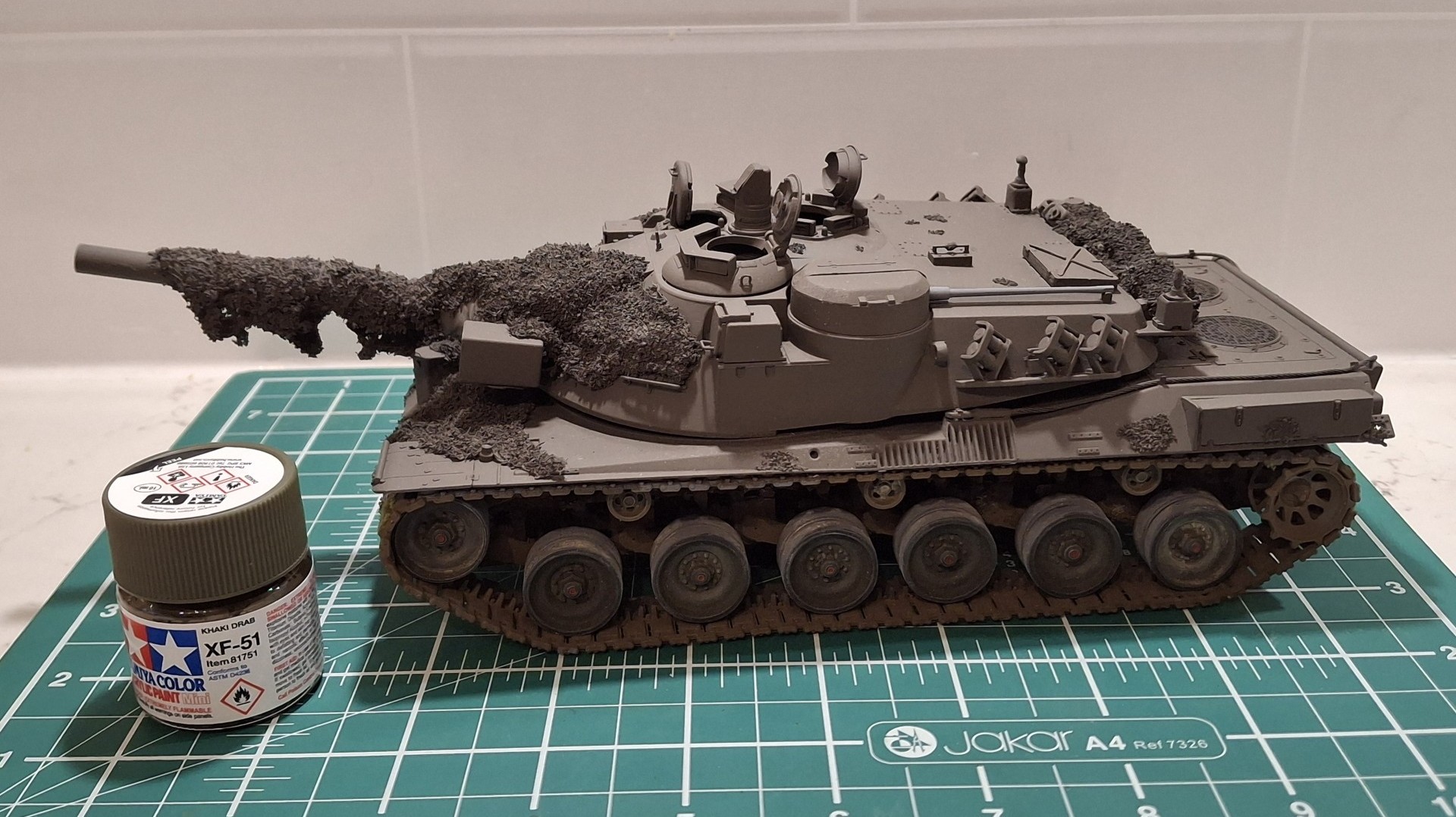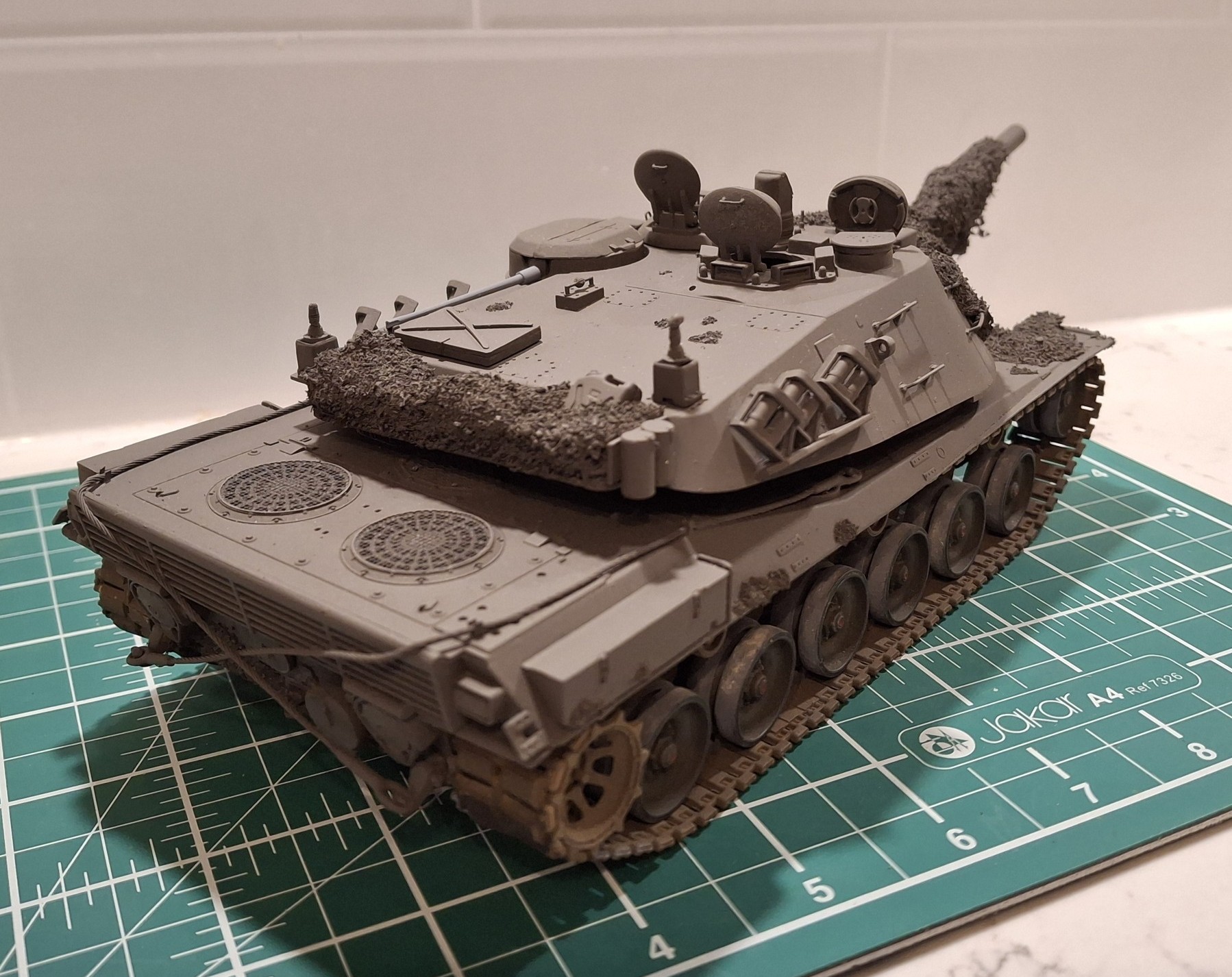 In between a few medical distractions and the M48A2 project, I’ve managed to get a coat of paint on the mighty Dutch MBT-70; I need to apply another coat as I’ve missed a few places but progress perhaps: