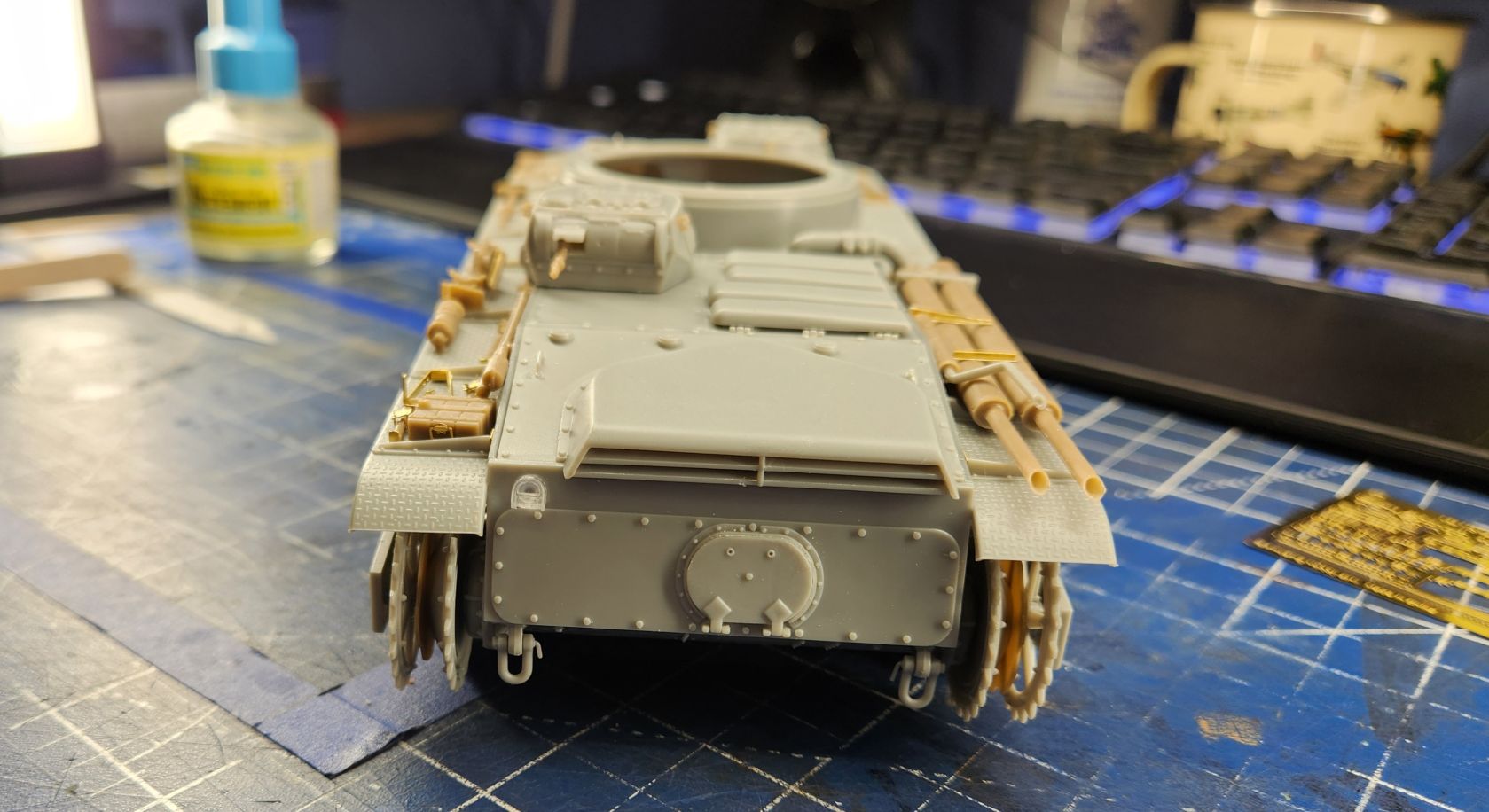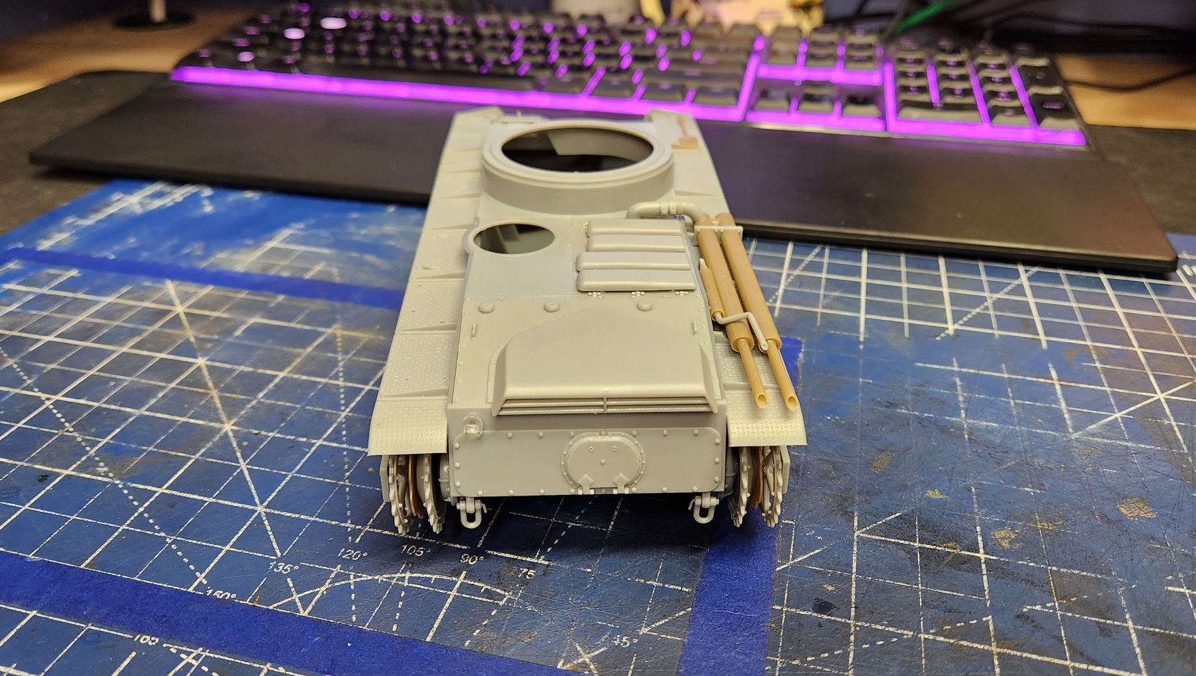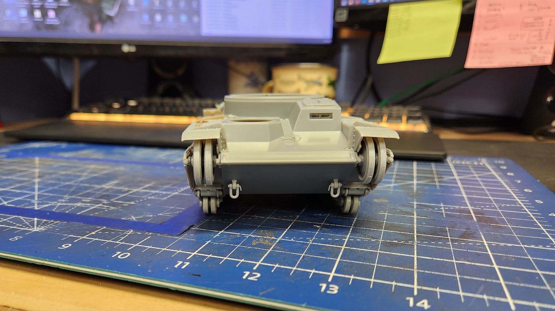 I can’t recall if I posted a starting pic or not and I can’t be arsed right now to scroll back through eight months of posts, but I am going with Amusing Hobby’s Neubaufahrzeug, which I finally got a start on today: