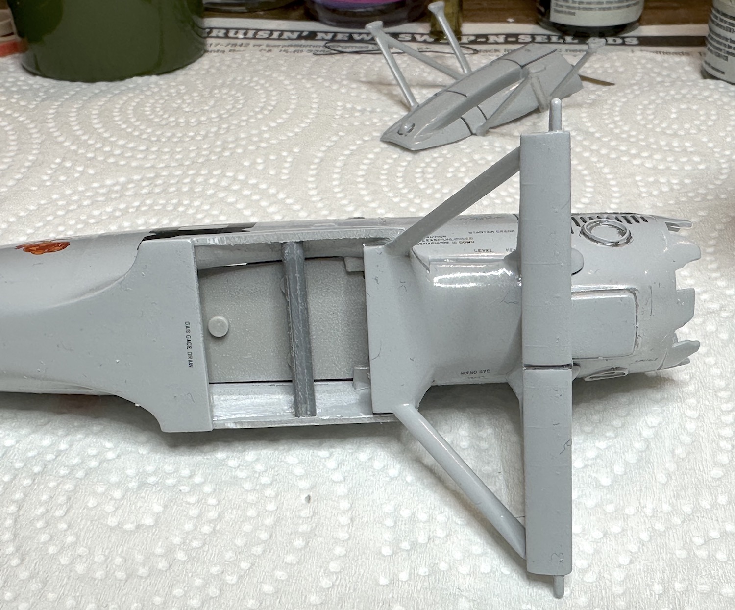 For some reason, the instrument panel with its individual gage decals was not photographed prior to closing up the fuselage halves. Now its kinda hard to see.