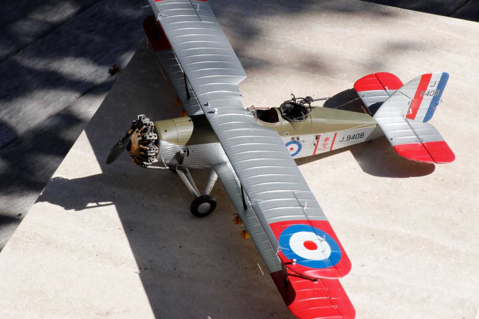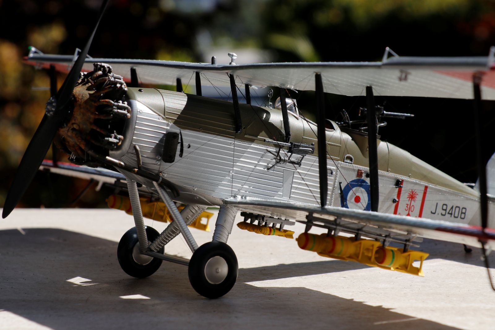 Here are some more pictures with more parts added. The rudder & elevator wires were done with the thin line. The Yellow Wings decal instructions said to paint both sides of the ailerons yellow. That seemed odd but looking at the pictures in the book there was a tonal difference between the ailerons and the grey panels so yellow they are and quite attractive too!