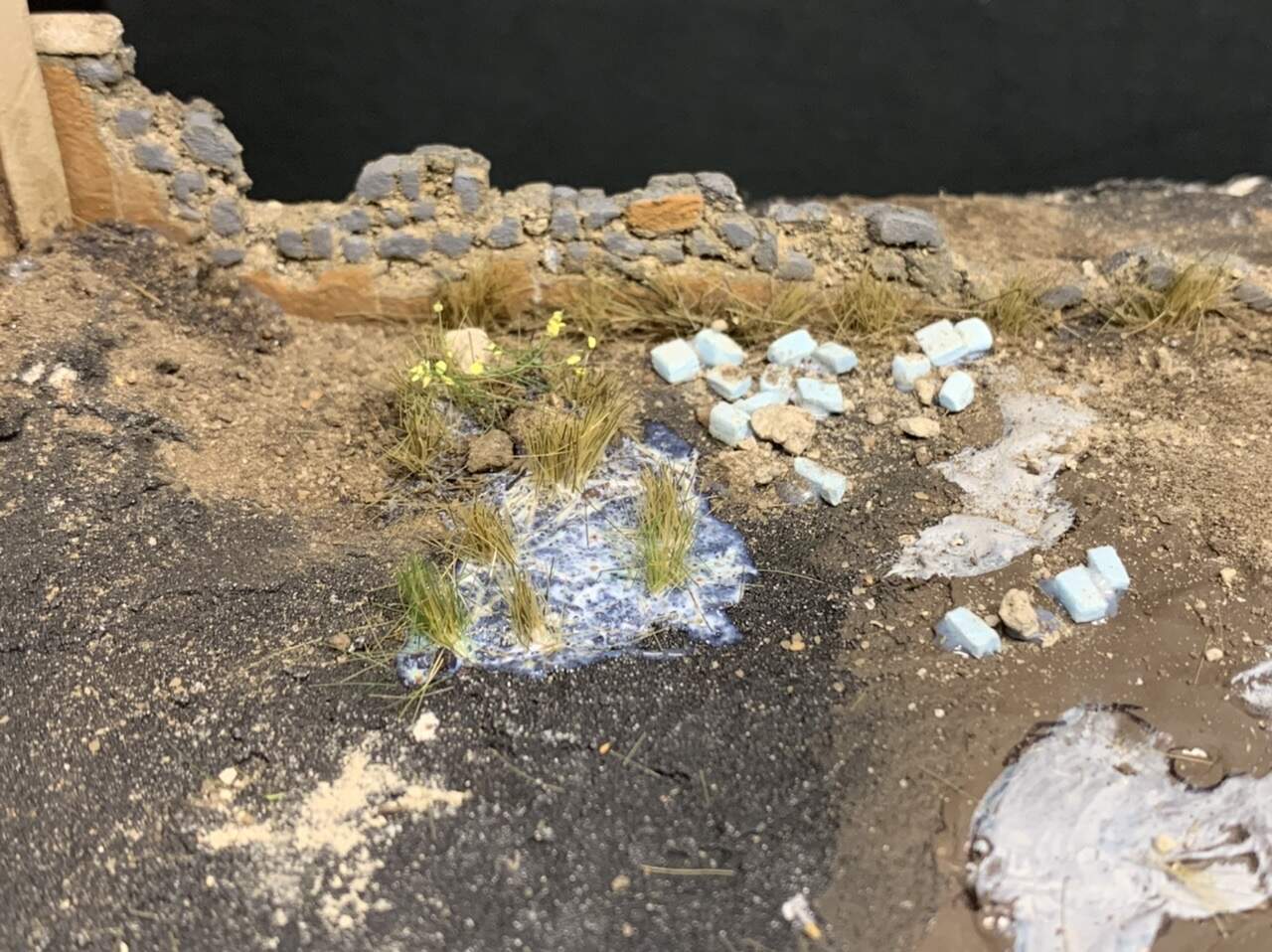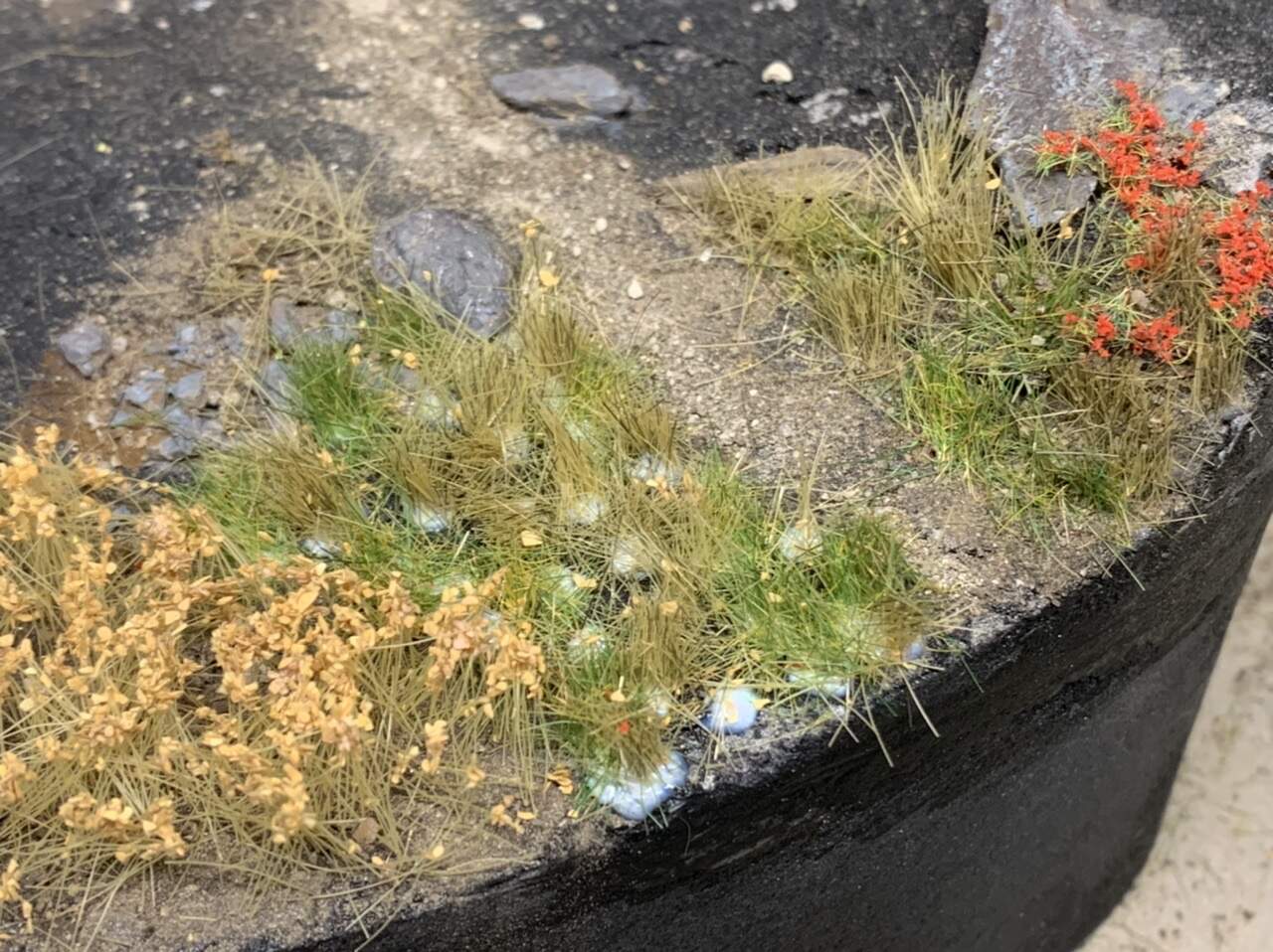 Very nice progress Erik. I like the way the way you do the grass areas. I will give that a go on some areas when I do my prairie grass for the Stillbrew. Is it just dried natural earth you sprinkle in between thew tufts ? looks very realistic like that.