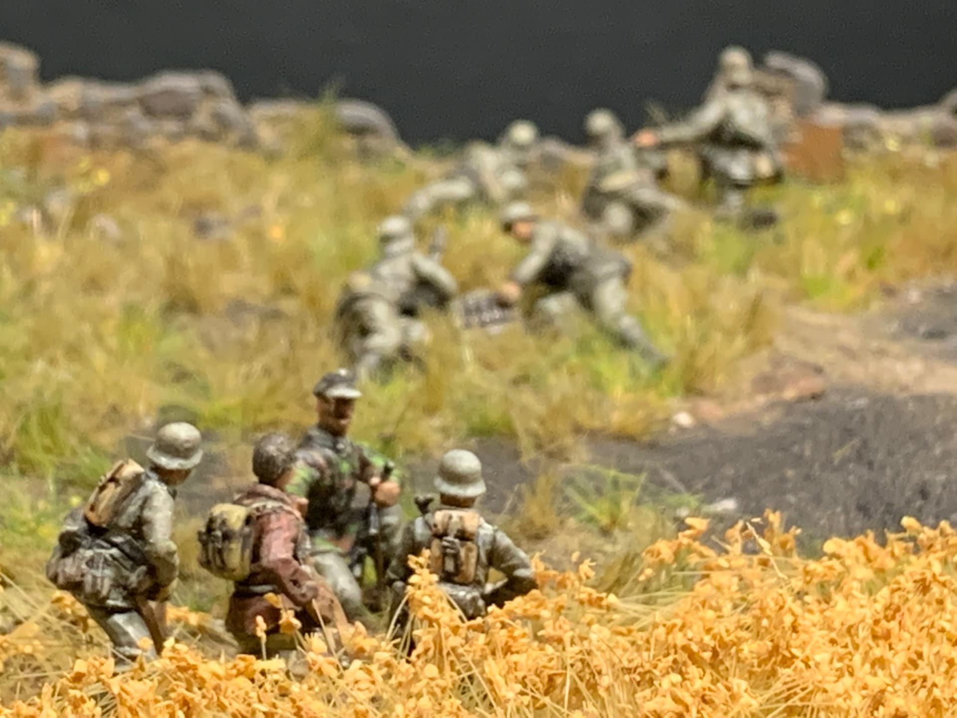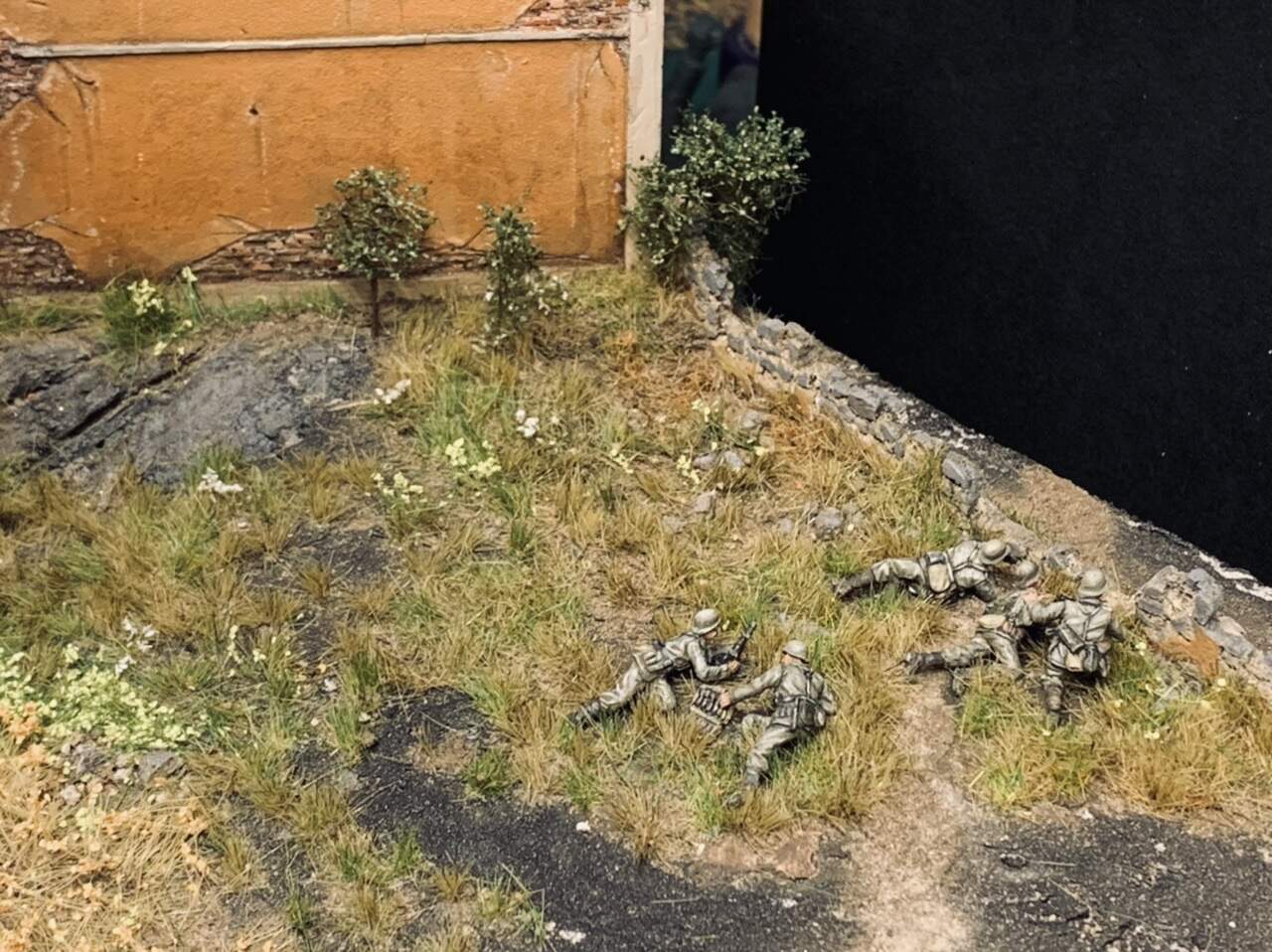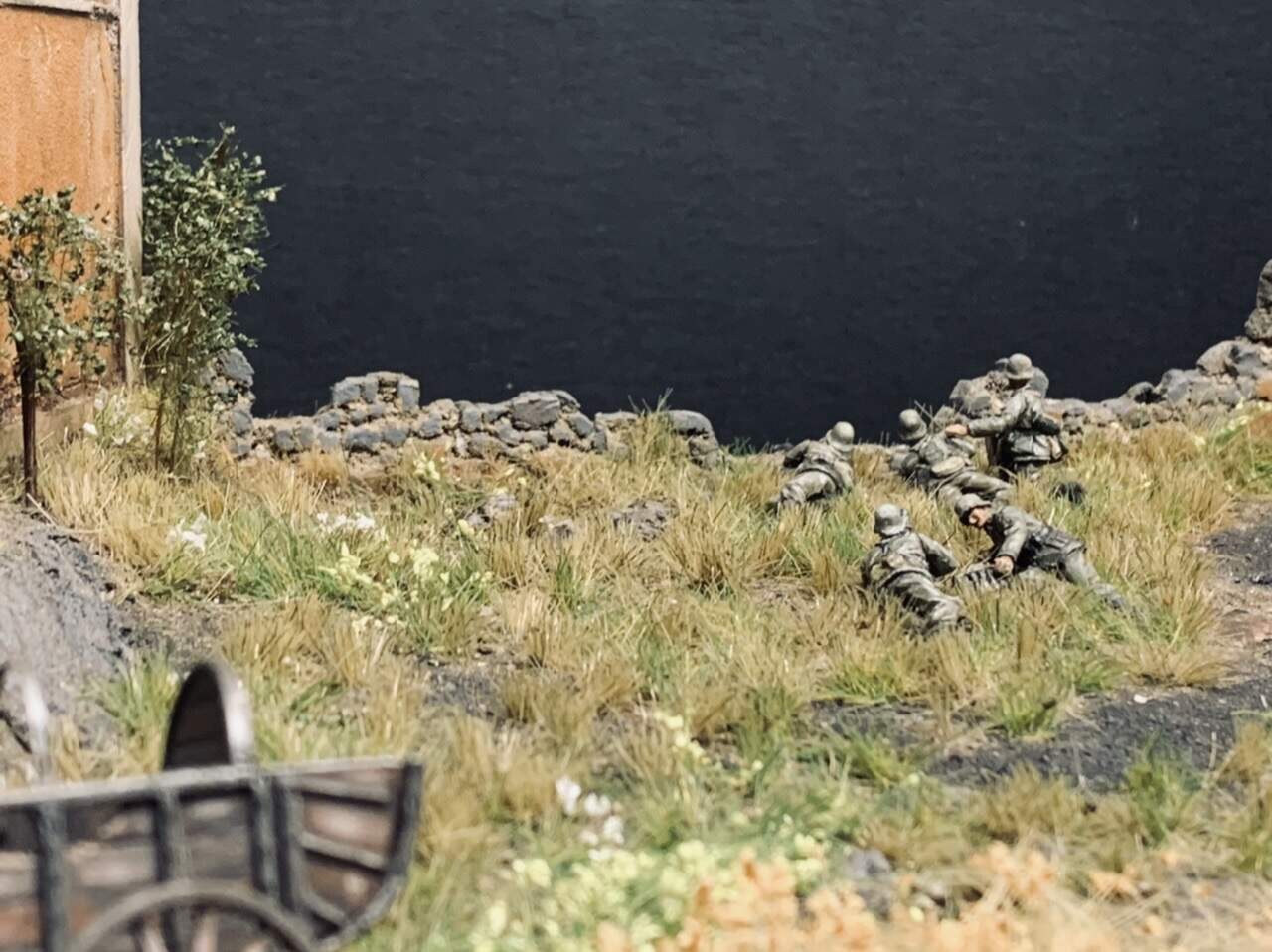 That is looking very good Erik. Again, it’s a clever way to get maximum grass cover by using those blobs of glue. Really like the way that you’ve placed the troops as well. Nice update…