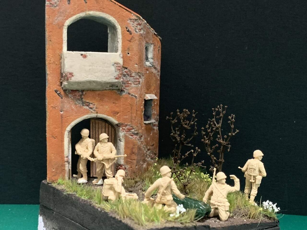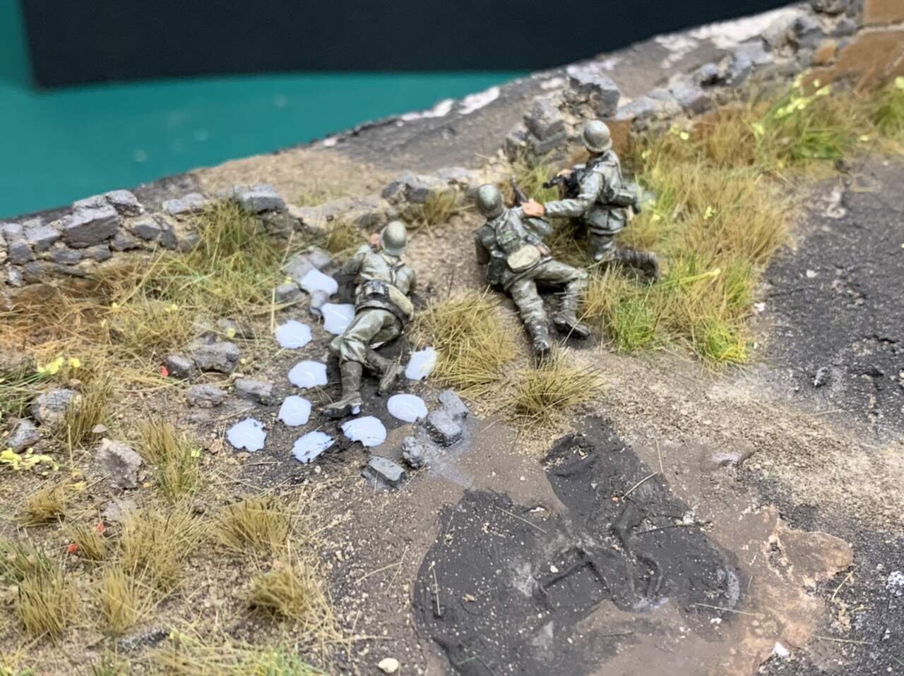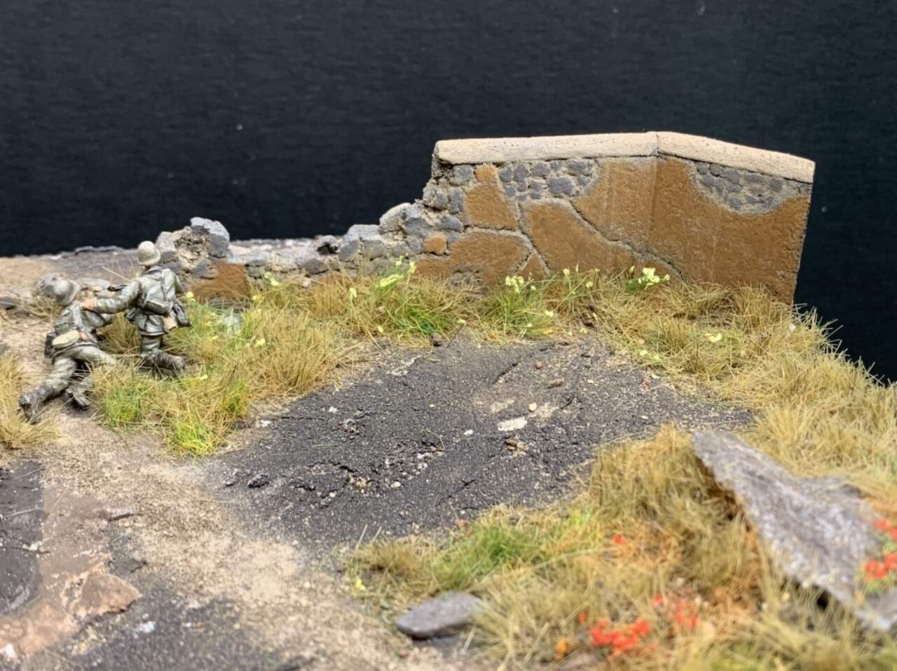 That is looking very good Erik. Again, it’s a clever way to get maximum grass cover by using those blobs of glue. Really like the way that you’ve placed the troops as well. Nice update…