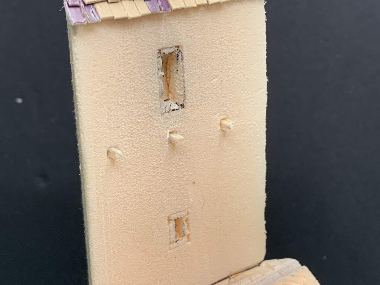 Thanks guys! The base and building are made of XPS foam. XPS foam is used for isolation in buildings. Cheap stuff, 60 x 120 cm x 5cm costs 10 €.