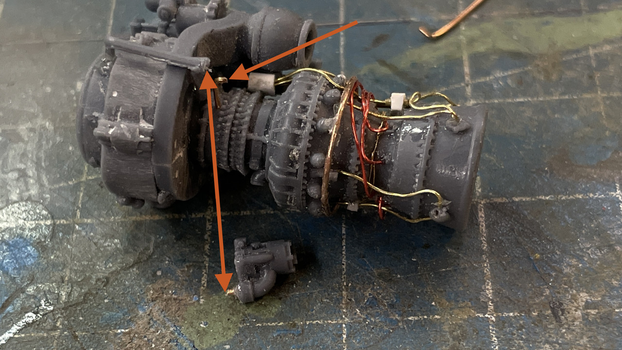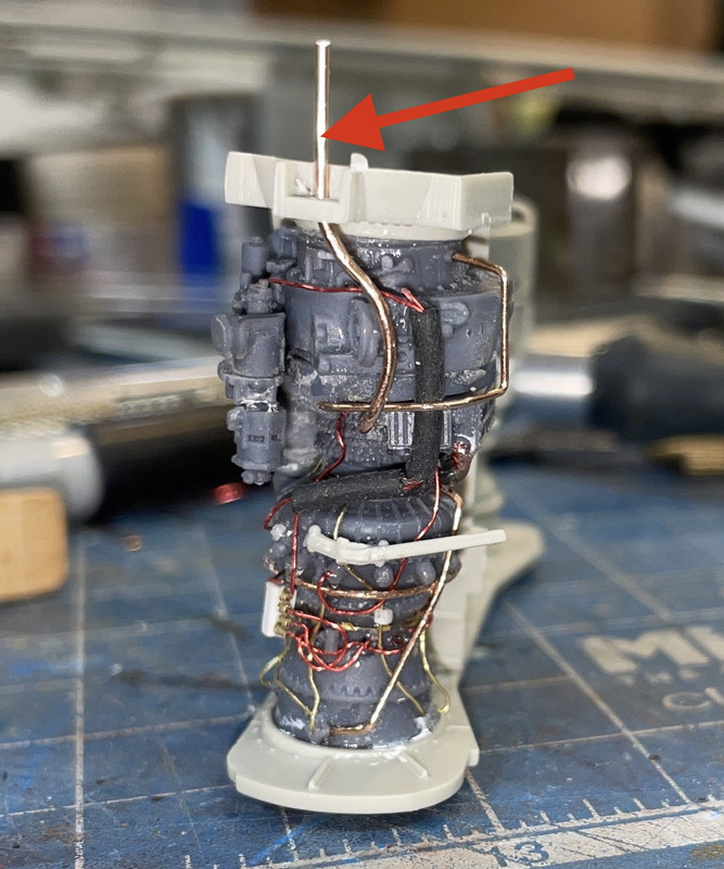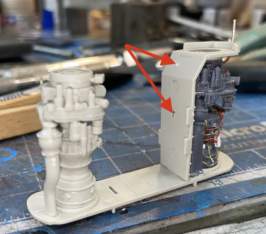While doing this I must have put some pressure on the right rudder pedal on the co-pilot’s side and broke the tiny plastic pin holding it to the base. I drilled the pedal and base with the 0.010" drill for some High-E Guitar String. Here’s what that ridiculously small drill looks like. They’re so brittle and fragile that it’s quite easy to break them taking them out of their little holder box, or if you exert any side pressure at all.