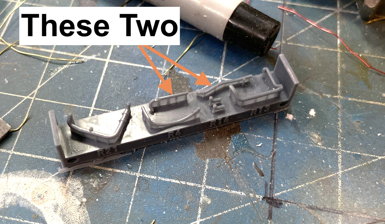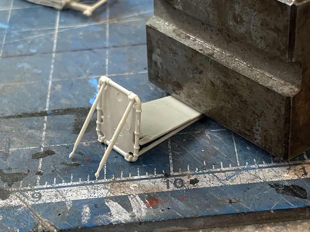 There were two more seats that needed construction. As I noted before, I’m not happy with the engineering of these seats. They’re attempting to make scale-sized members, but that gives no gluing surface and some of the cross-sections can’t sustain themselves.