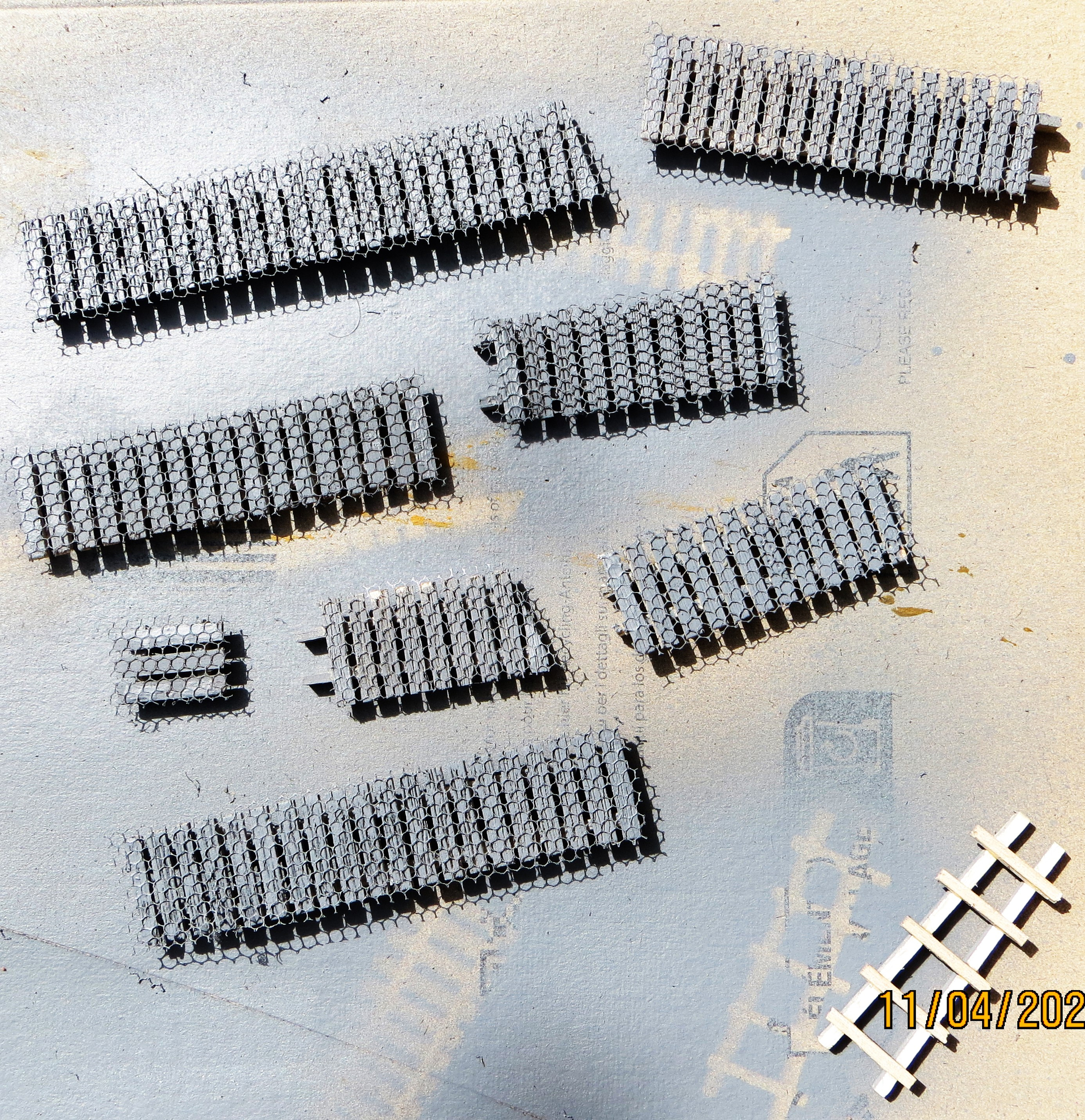 Added ‘chicken wire’ to the various duckboards and gave them an undercoat, also made the first of several trench ladders.