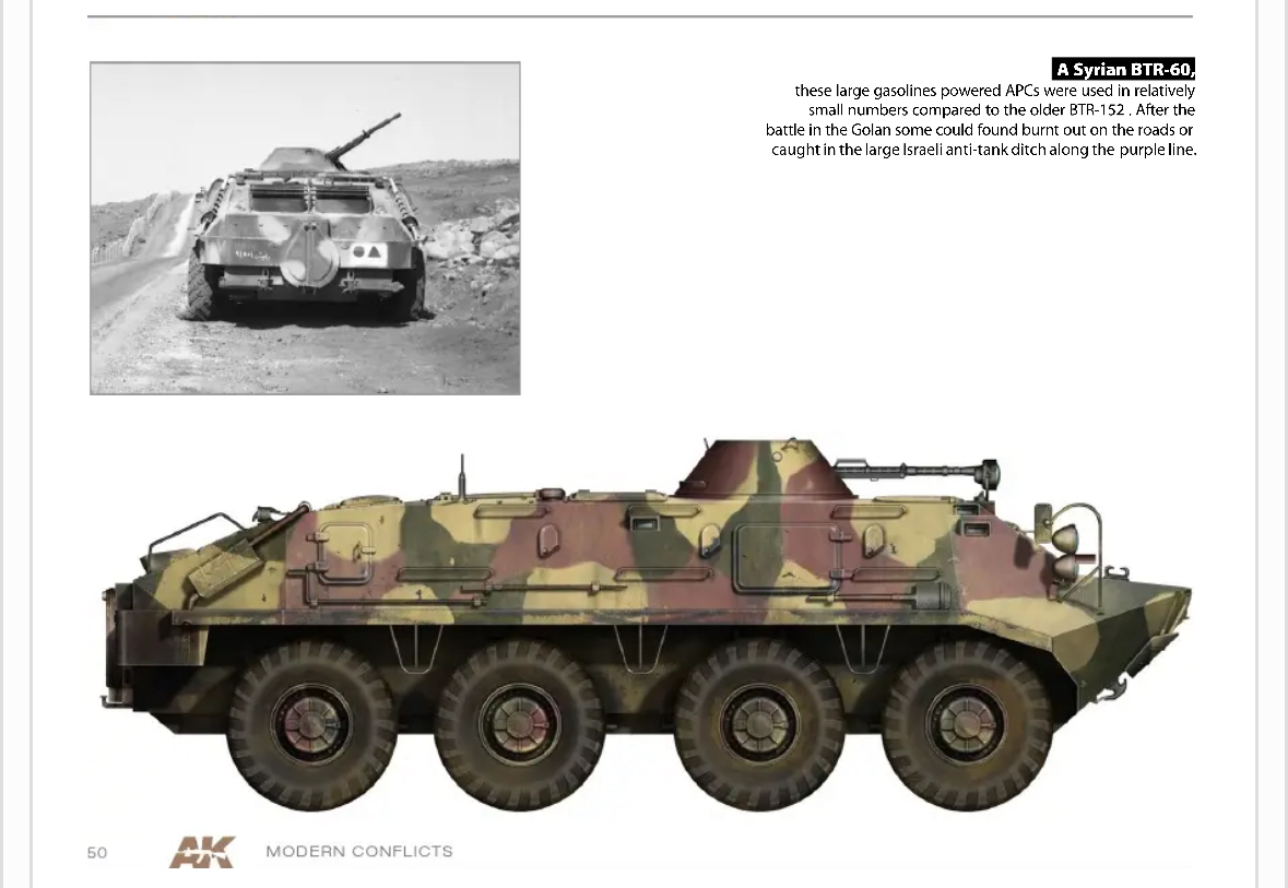 I was looking at it recently and I don’t think that both the Egyptians and Syrians used any open top or PA versions of the BTR, they seemed to only use the more common variant with the 14.5mm MG turret. There isn’t any concrete information outright saying that they didn’t use the PA or the open topped BTR-60 variants; but if they bought the BTR-60 in 1966 or 1967 (1967 being the earliest date of Egyptian/Syrian use of the BTR-60), they would’ve all most likely have been the BTR-60 with the turret.