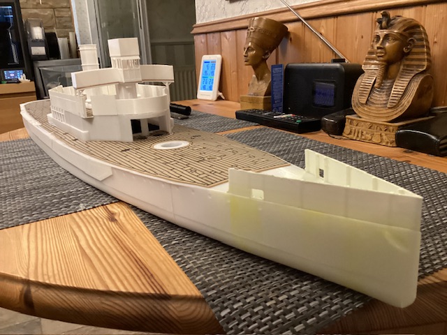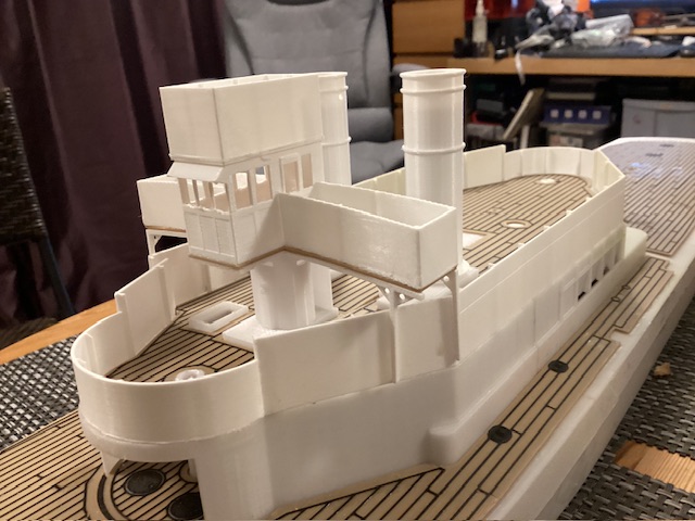 Forward breastwork and superstructure. Hoping the weather will warm up enough to start painting next week