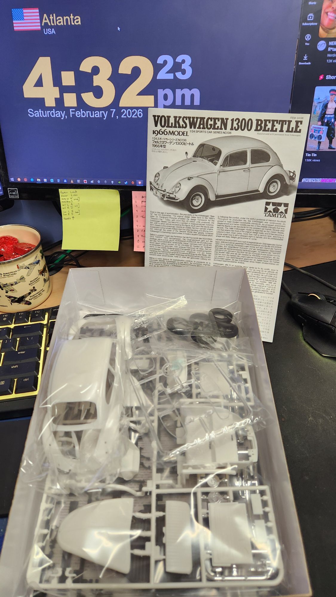 I have the floor pans basically done for my Beetle entry (on right) and my Karmann-Ghia for the Tamiya Tribute campaign. Both bodies need polishing of mold lines before I can paint them; this is the hardest part of the build for me.