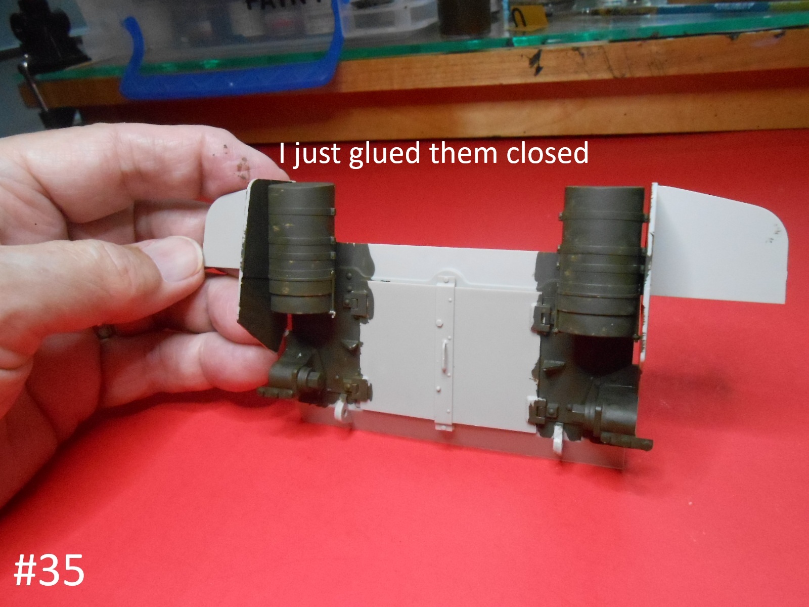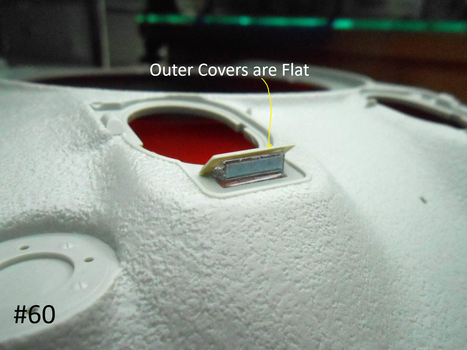 First you mask off the lenses, the flat parts that art looked at. Then I cover the angled side with Bare Metal Foil trimming around the edges. Then paint what color is correct. After the paint dries remove the Masking off the lens area, but don’t remove the foil. This acts like a mirror, and while you will not see images looking in it will let some light through giving the impression that they work.