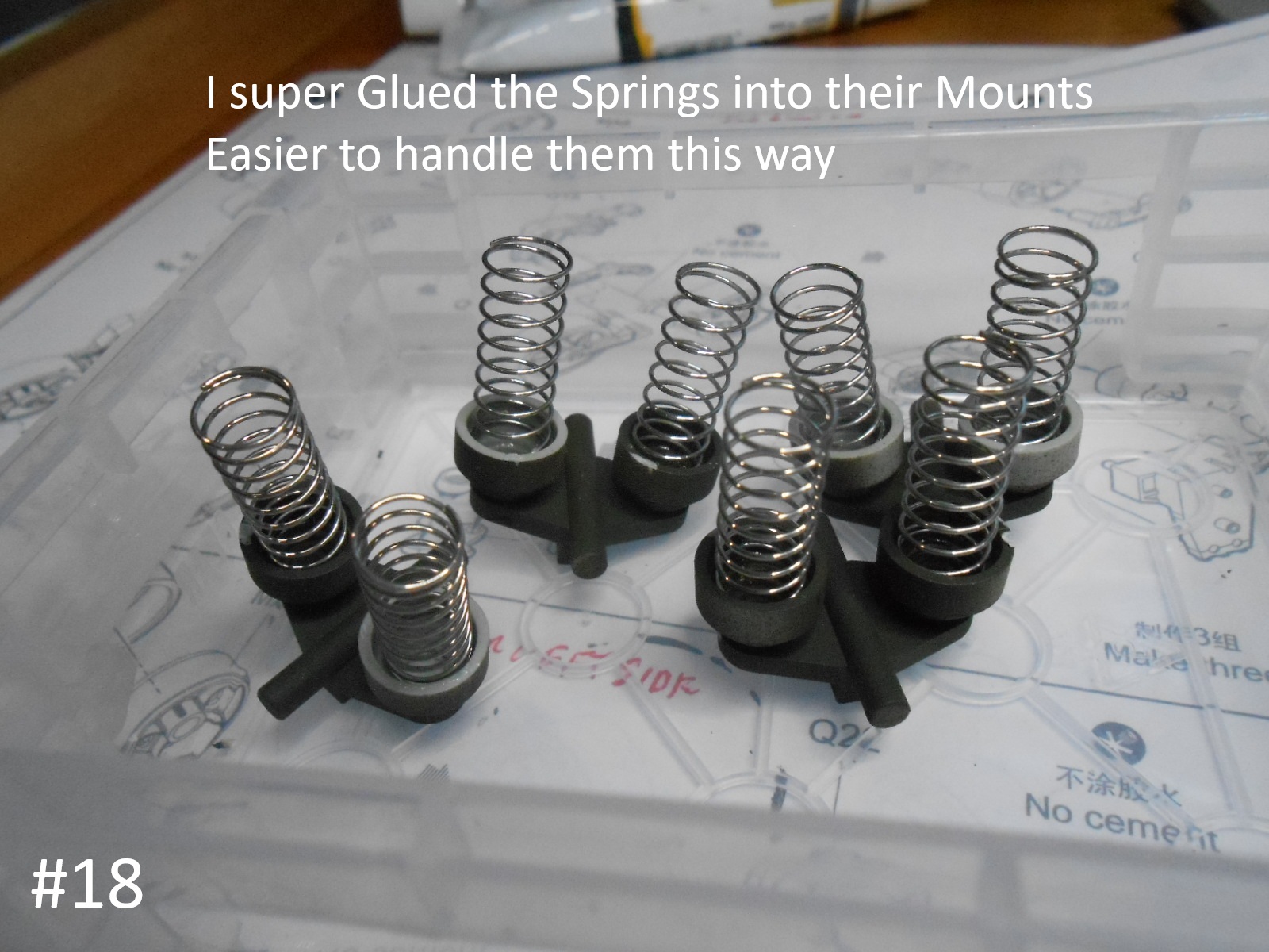 If you super Glue the Springs to their Mounts, they are easier ti handle.