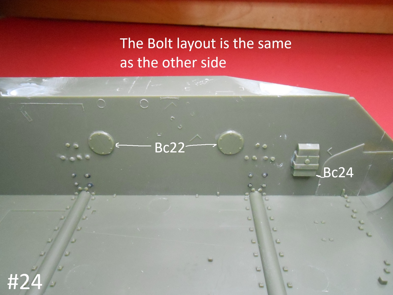 I finished the Idlers and applied the Bolt heads to the inner Hull.