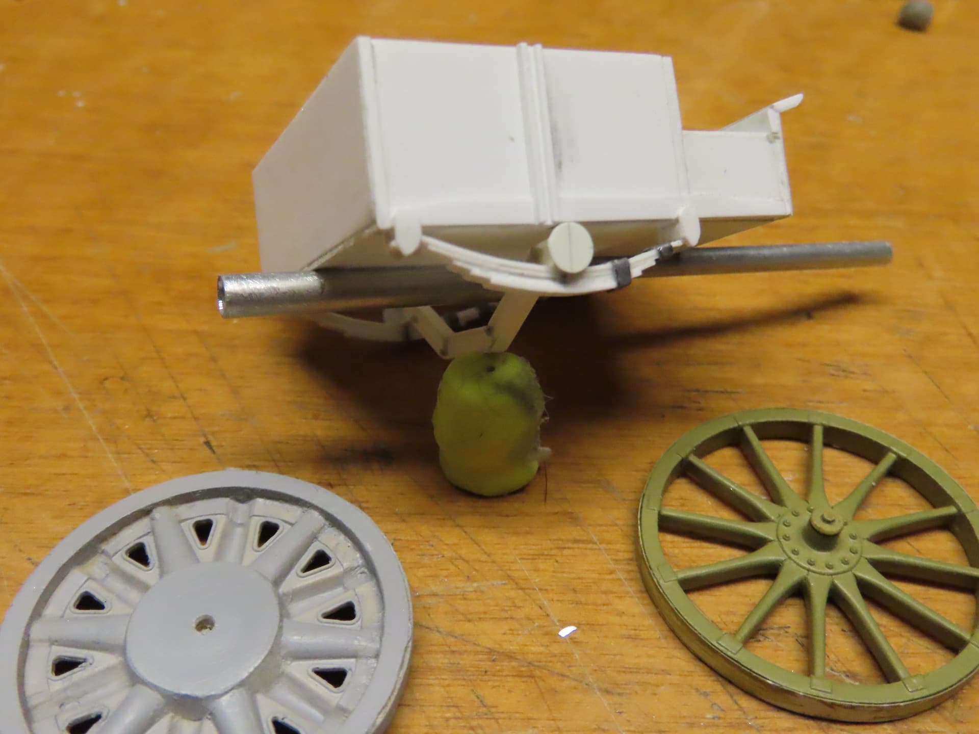 A few enjoyable hours over 2 evening got me this far. It can be changed from th wooden wheel version to the earlier stamped wheel one by just changing the seating and backrests. Other tiny details prolly won’t be noticed.