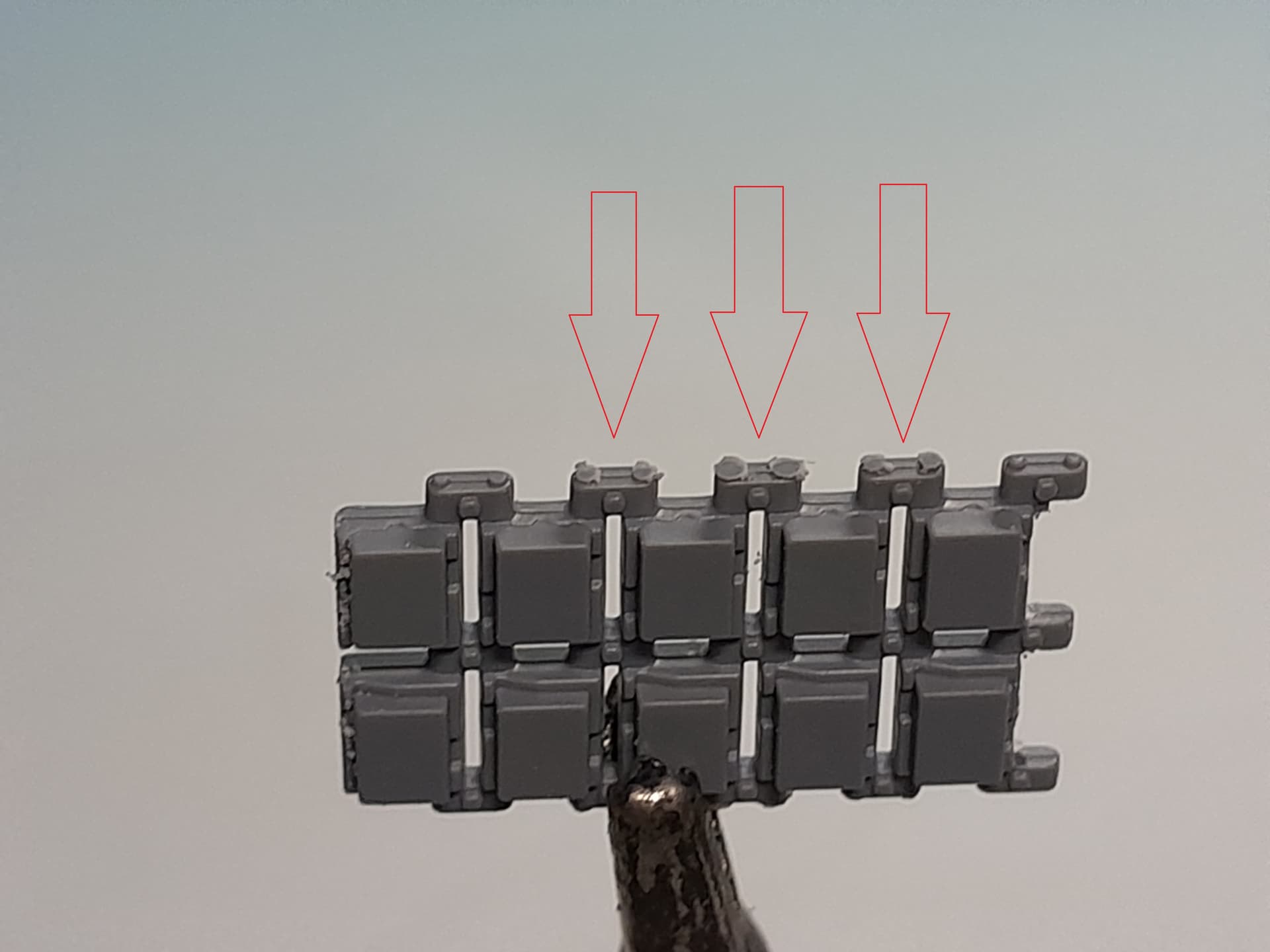 I continue with the tracks. They could have been better. They are not produced as single link tracks solely but also some molded multi link pieces. There are a lot connectors from the sprue to the multi link pieces and some thick connectors at the end of the track segments. These are a bit tricky to remove and during the process you will loose the connector pins. I think I will sand down all the pins to give the tracks an even outfit