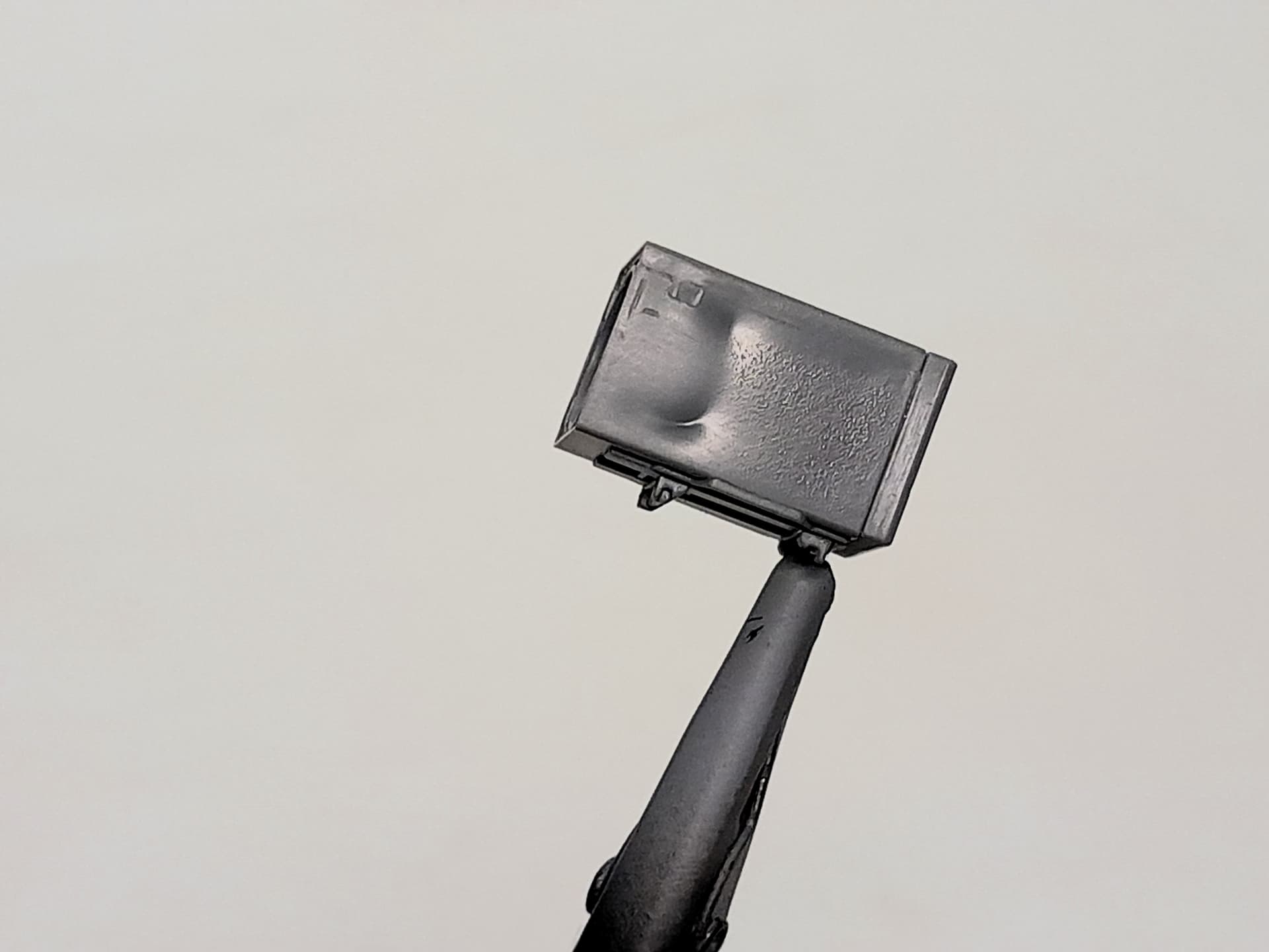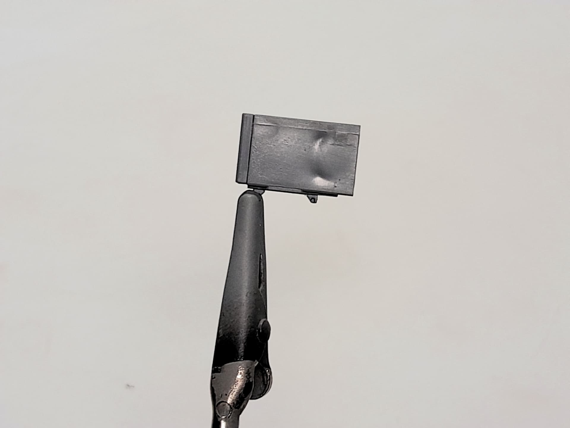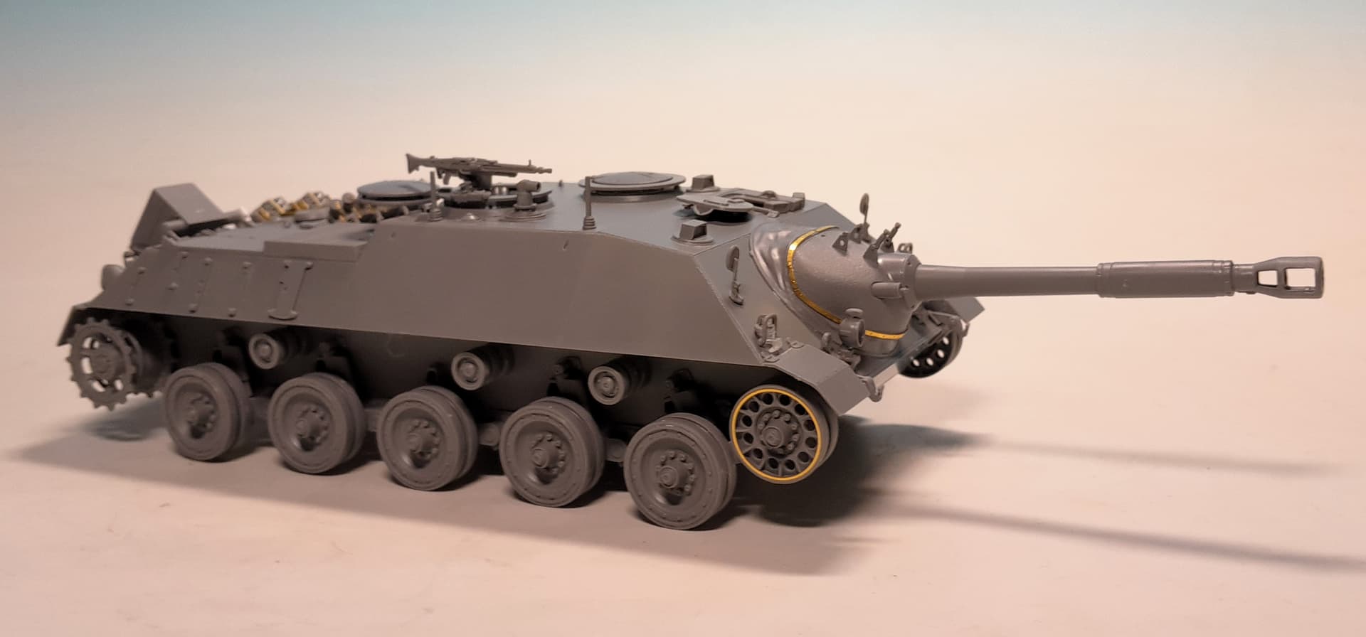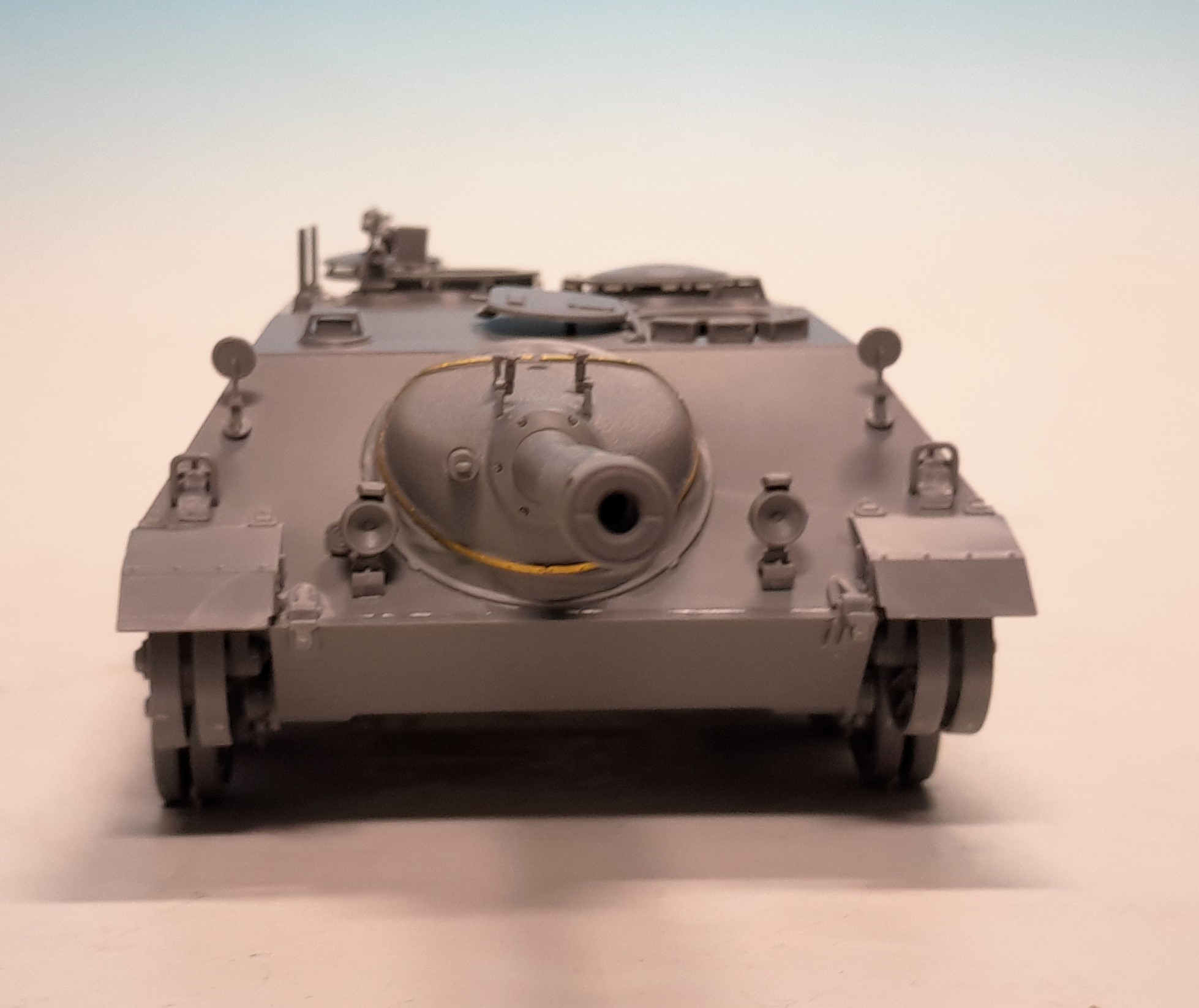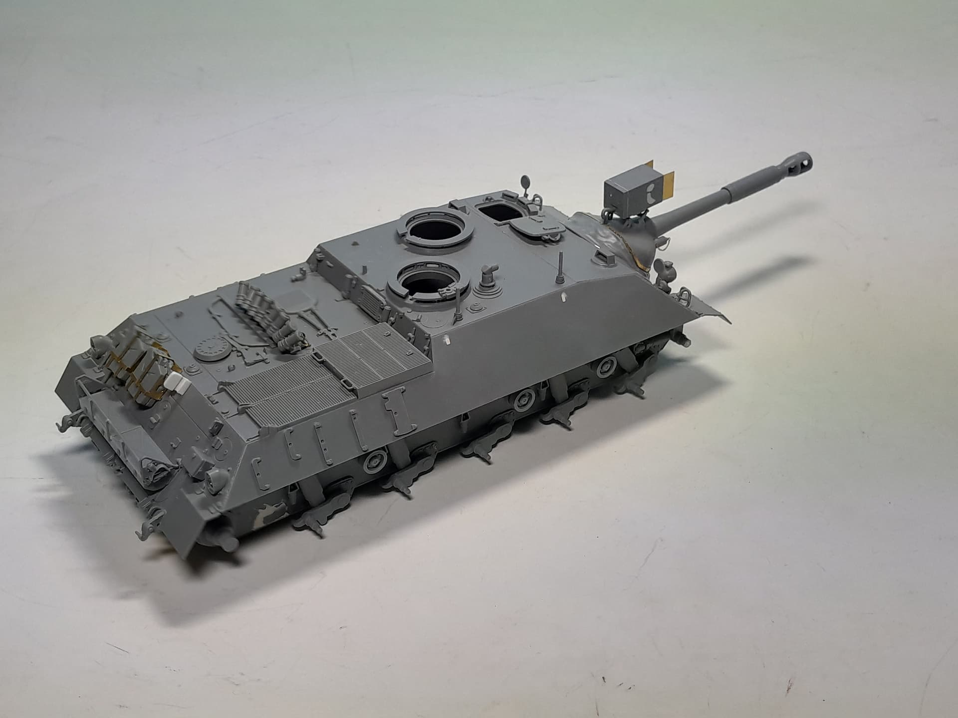 The IR-searchlight case was thoroughly sanded and now after the surfaces are nicely even I attached it at the gun mantlet