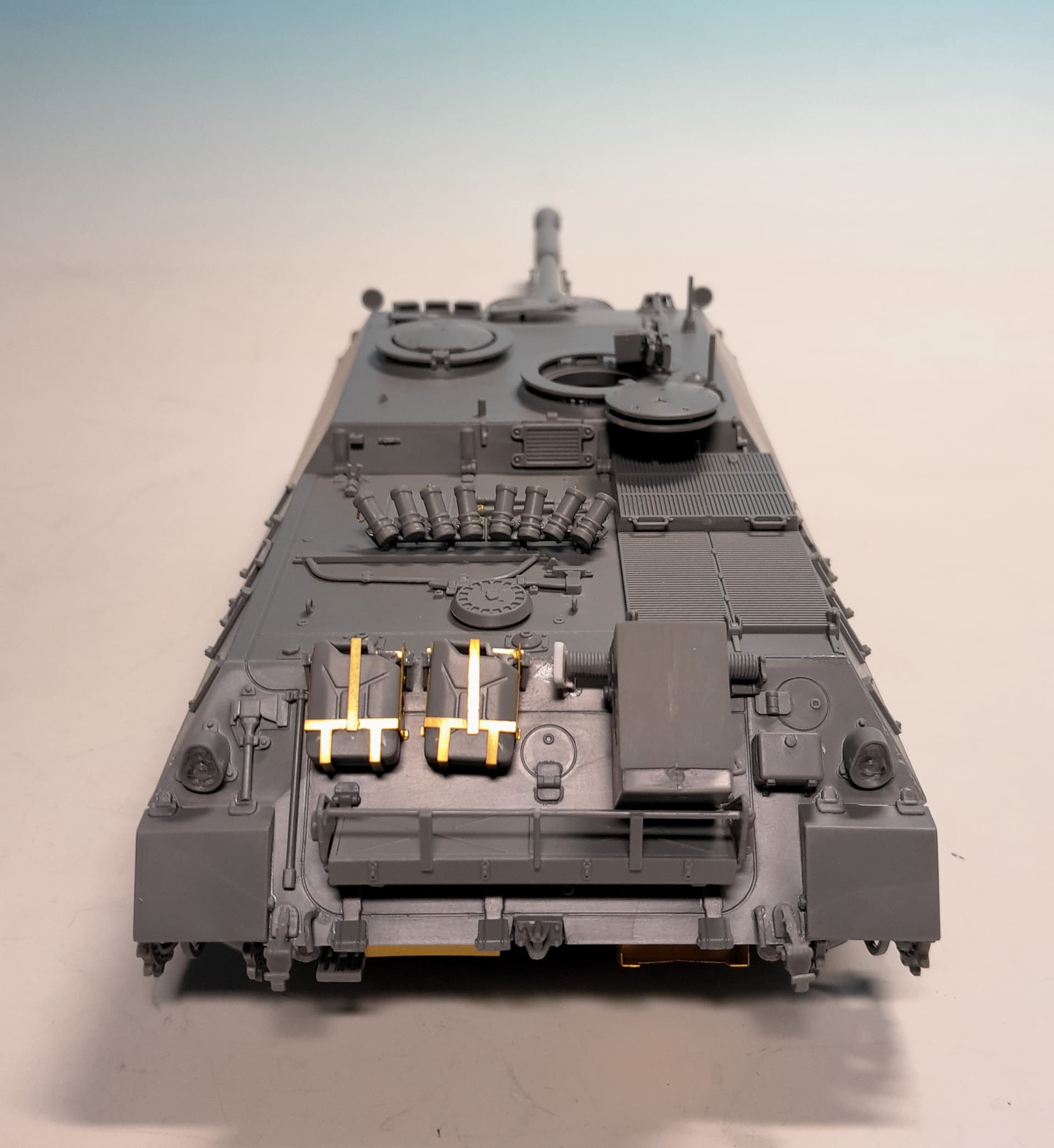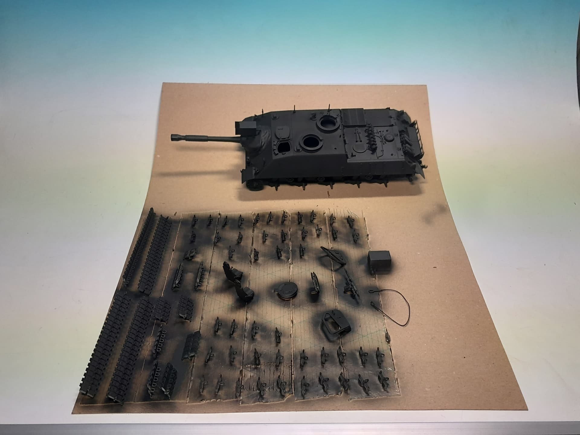 Sorry for not posting any news of my build but my smartphone was fooling me a bit. I already almost finished this little kit exept for some tools attached outside the tank, the tracks and the infrared target spotlight.