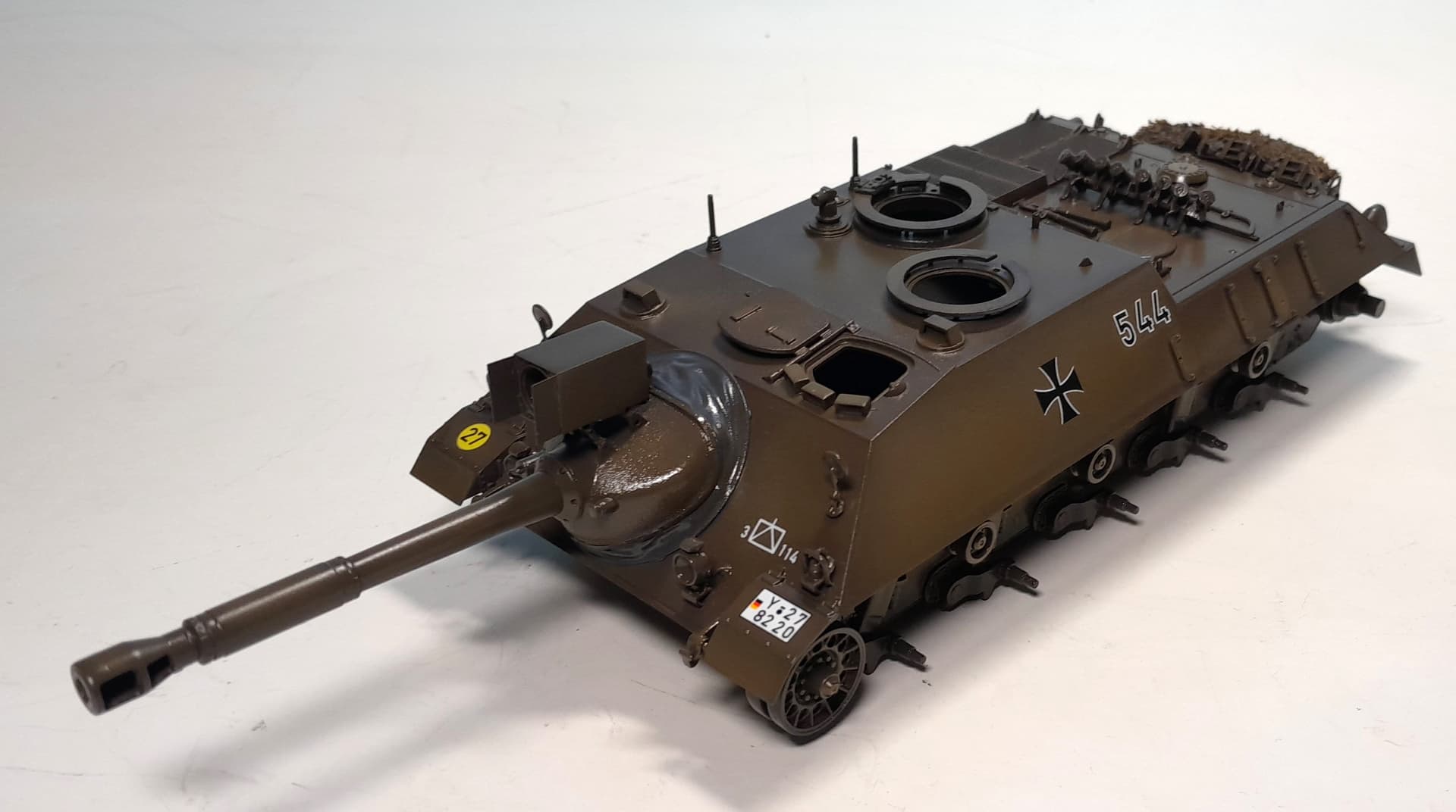 I applied the few decals for this specific vehicle and sealed them again with gloss varnish. The Bundeswehr registration number is in the meantime regrettably unknown to my customer. Therefore I used the kit ones.