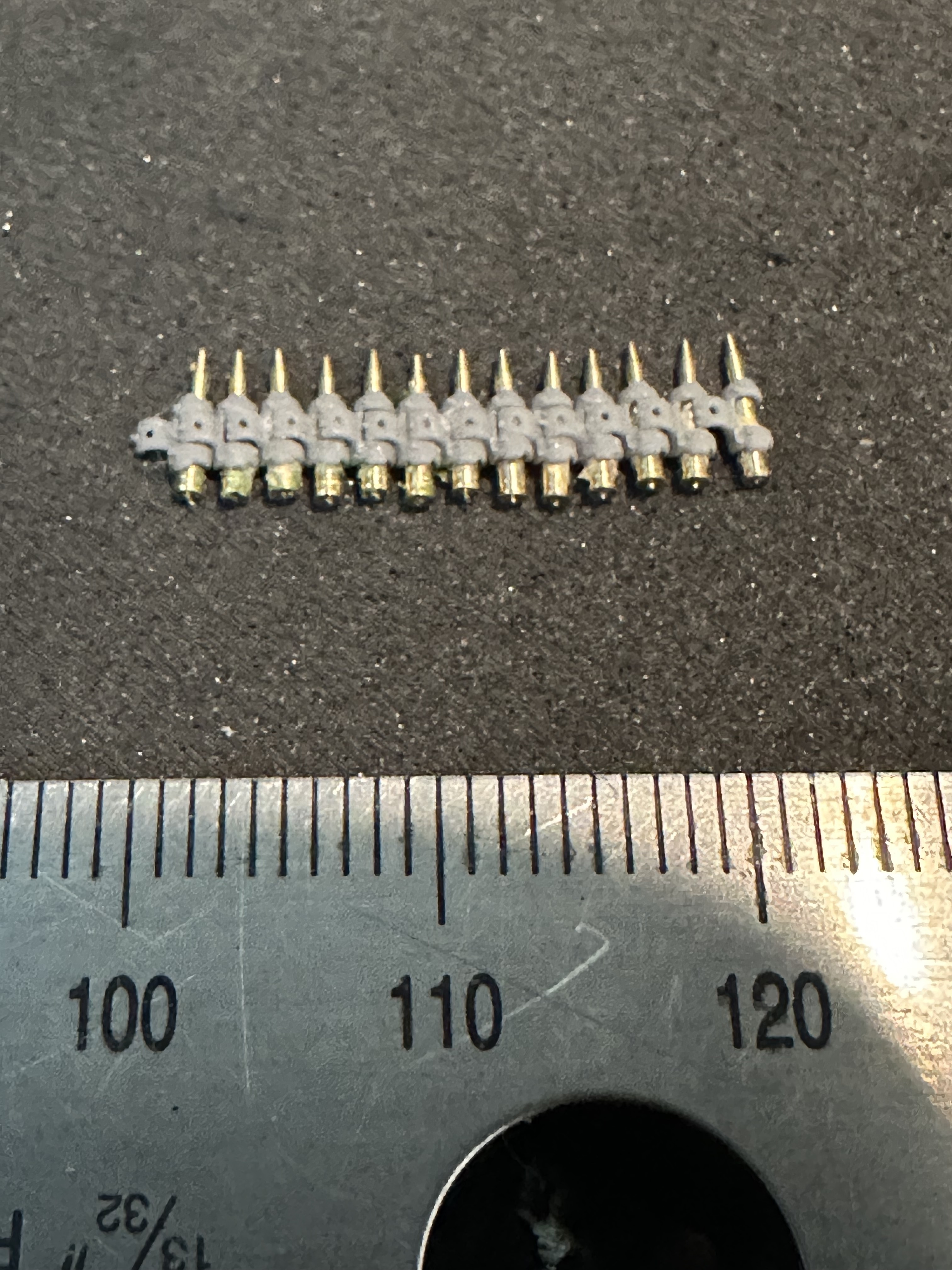 The metallic color turned out better than I thought. I just needed to give it time. On some of the rounds it got a little thick underneath. I’ll either hit them with thinner or just leave them. They’ll be on the bottom row anyway. Rounds are stacked in the box in three rows of 17, 16, and 17.