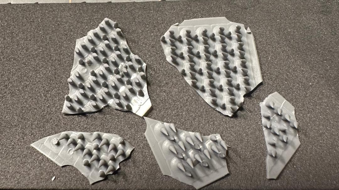 Here’s the best piece of advice I can give for anyone purchasing this set. The links are not easy to remove from the fret. It’s difficult to get a no. 11 blade in between all the little mounting points to cut them off. I’ve found the best way with a knife is to very gently cut the single link portion from underneath and behind the part. It will pop off of the two mounting points, but there’s a better way.