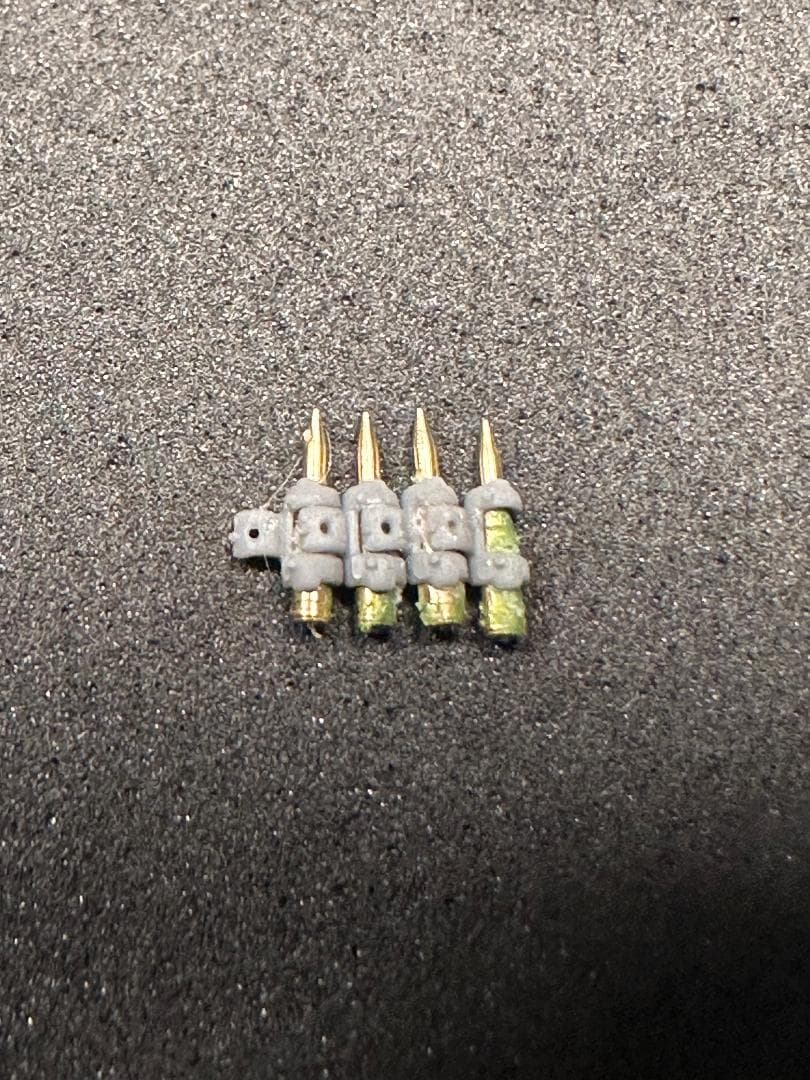 I did all of the HE rounds save two, which I’ll need to add to the AP rounds. The metallic paint came off pretty easily. I think it’ll be easier to paint them this way.
