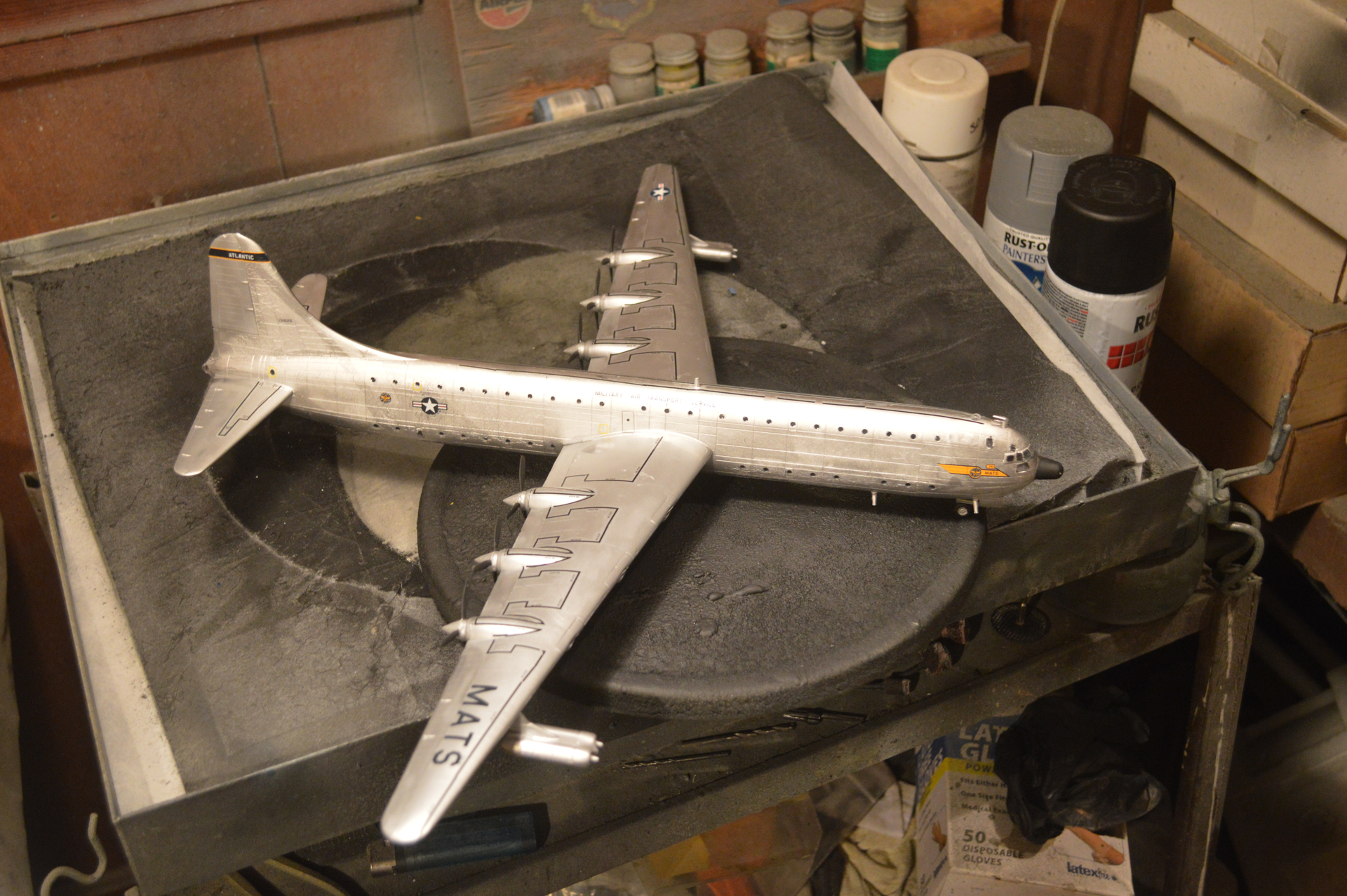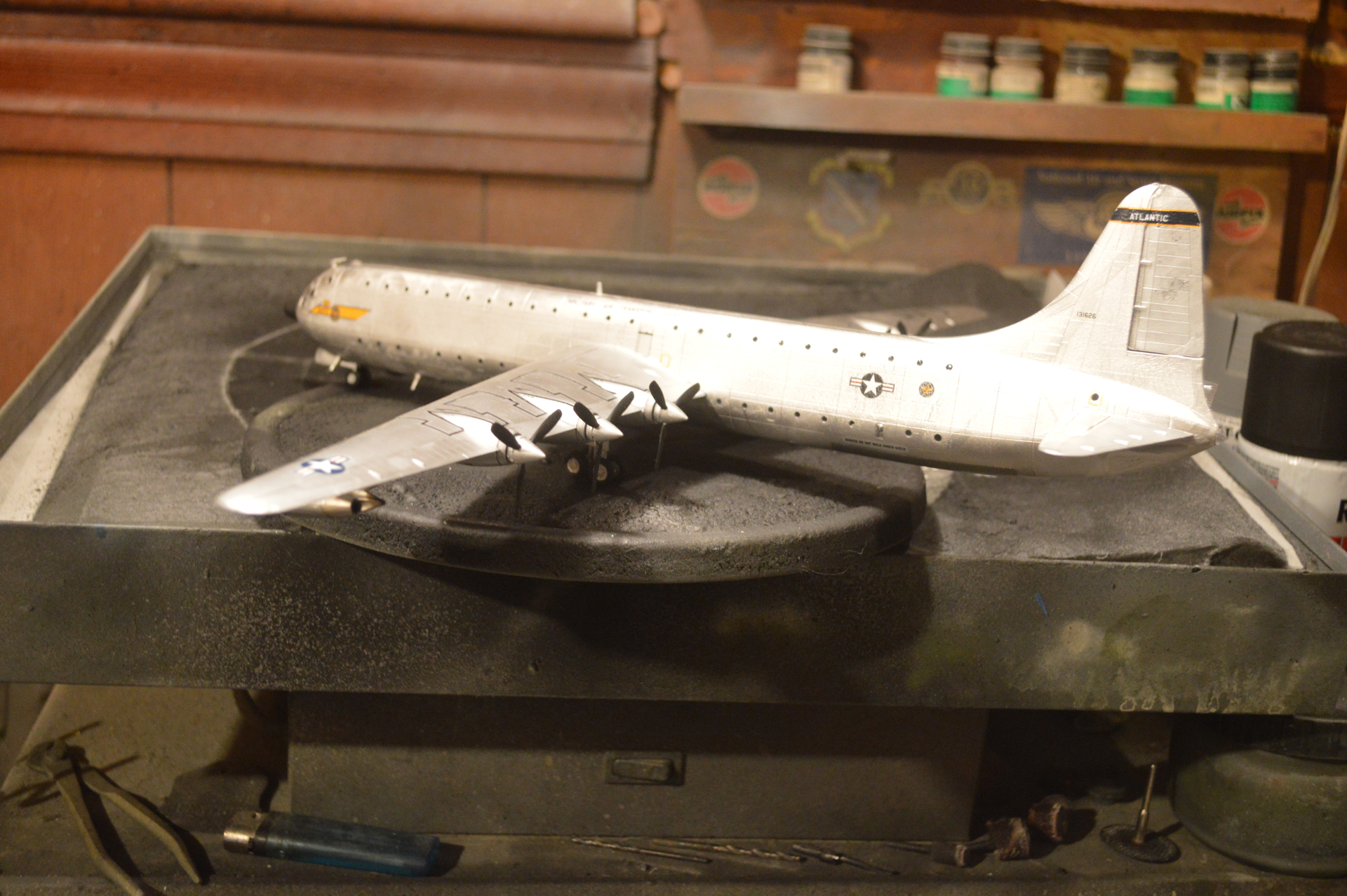 One of the Goodies Santa brung Me: Roden 144 XC-99; The Kit leaves A whole Lot to be desired; The Kit Decals are Garbage,Because no matter how much Micro Sol AND Solvaset I used, Some of the Markings kept Flaking Off, So I was forced to use Markings from A MATS C-121,Which I was going to do Anyway; I added Jet Pods from A Hobbycraft B-36,Seeing as A ‘Production’ Aircraft would have them; Paints by Alclad.