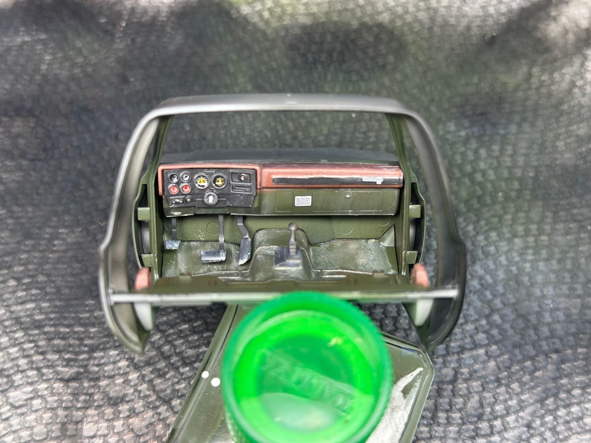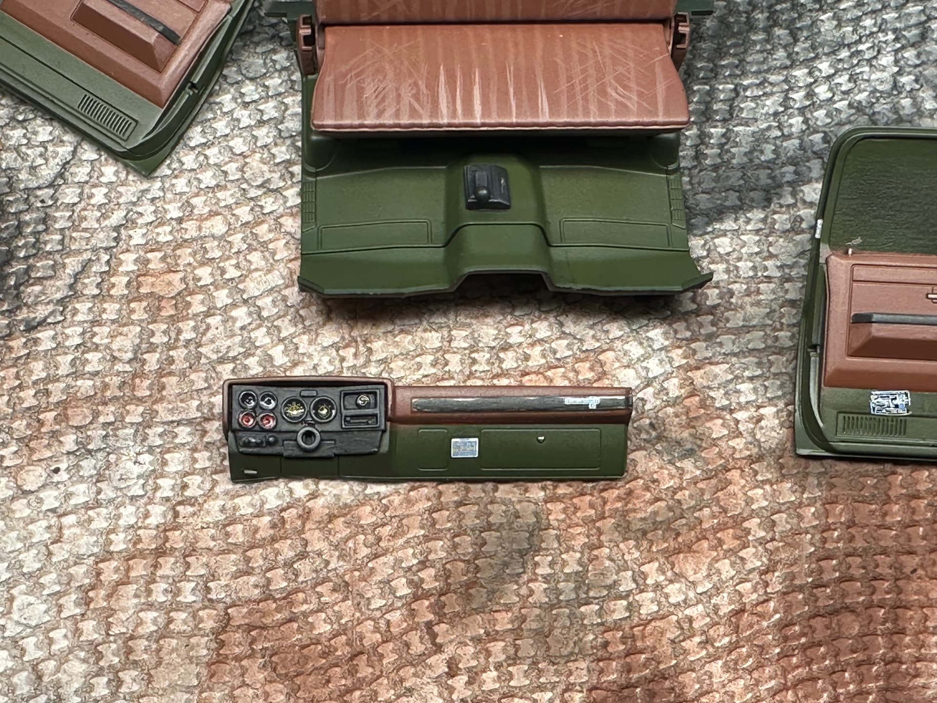Interior is ready to be buttoned up. Quick pin wash and dust effect nothing serious. I used AK clear water to replicate the dial faces