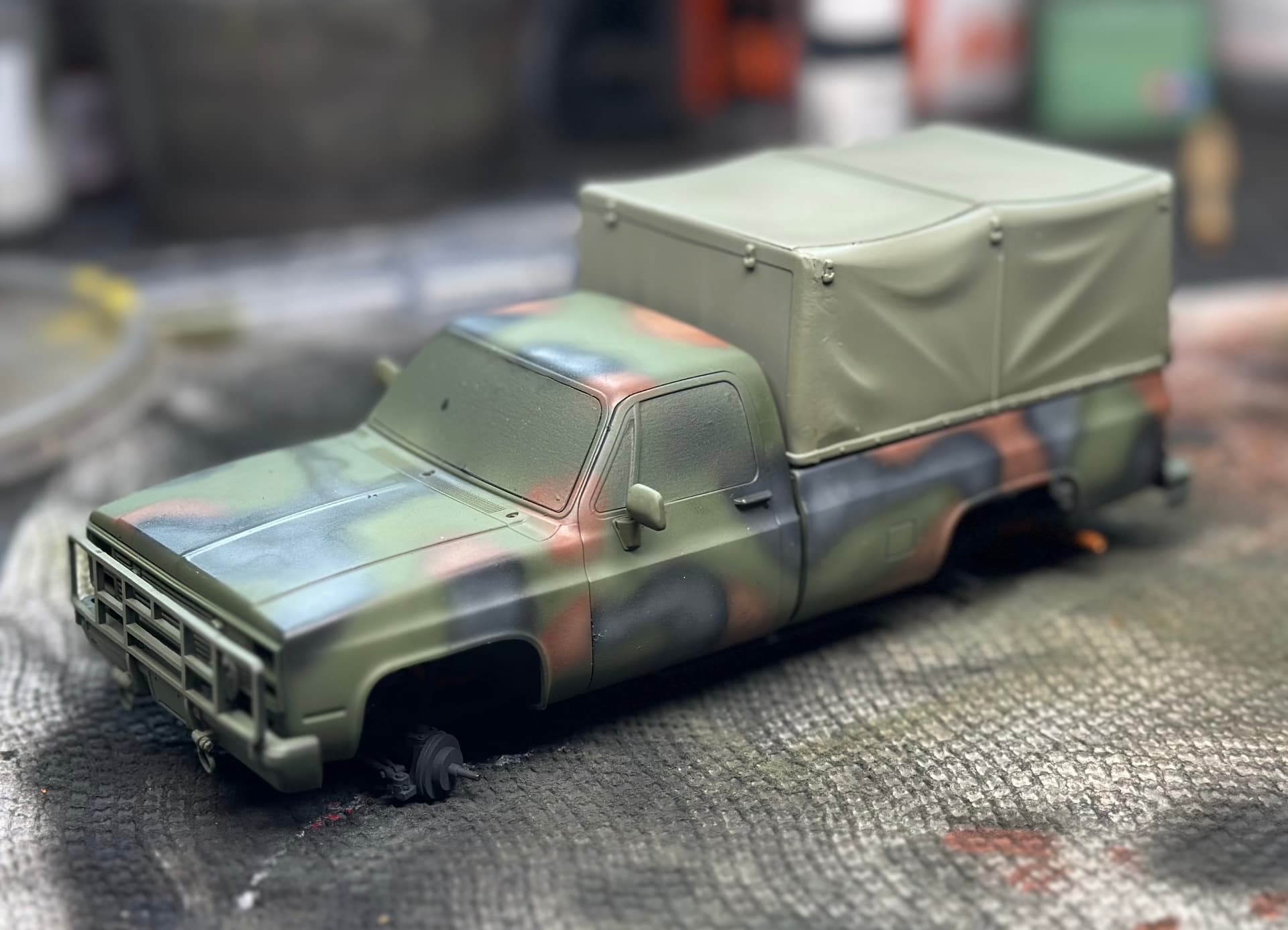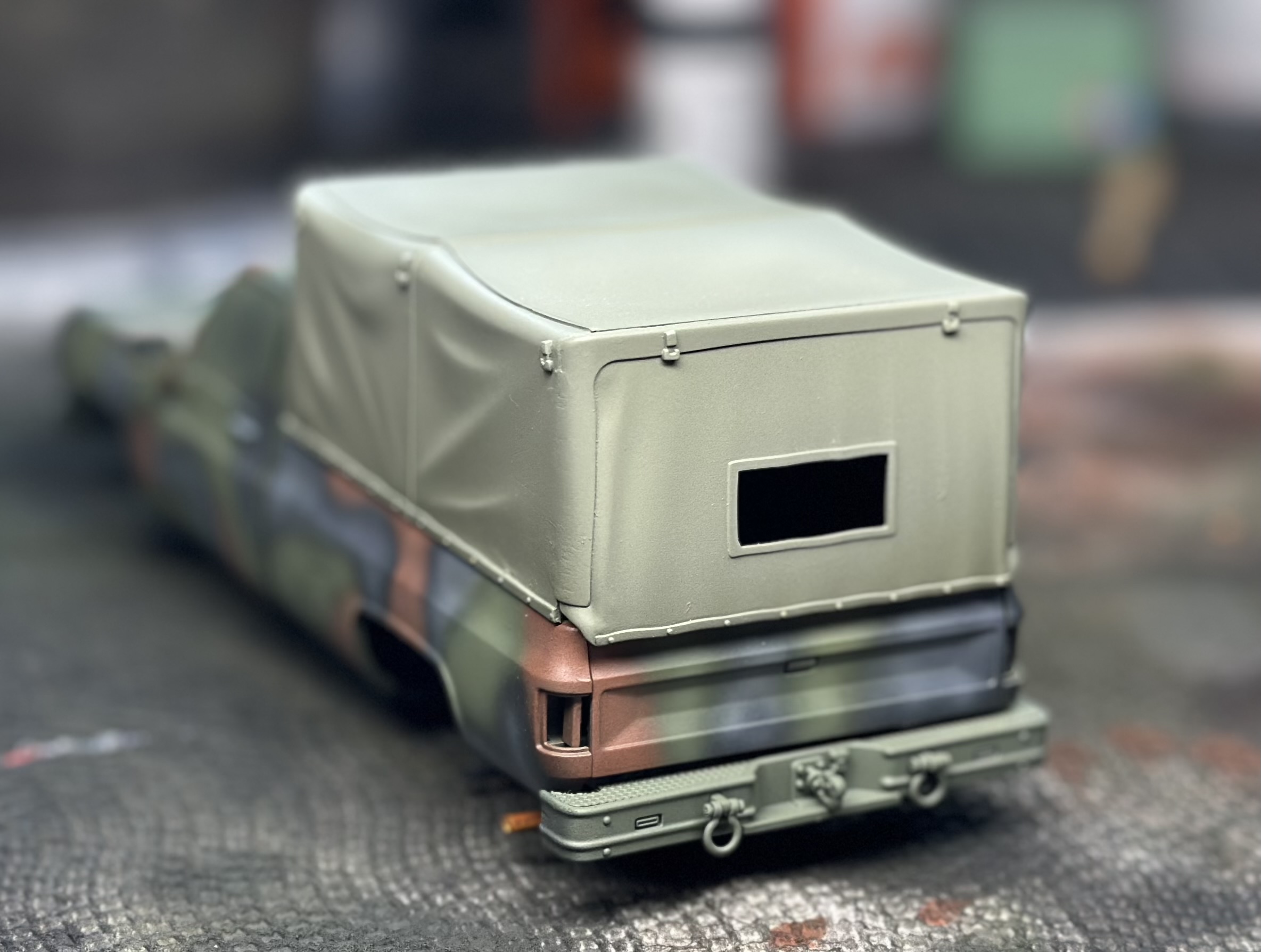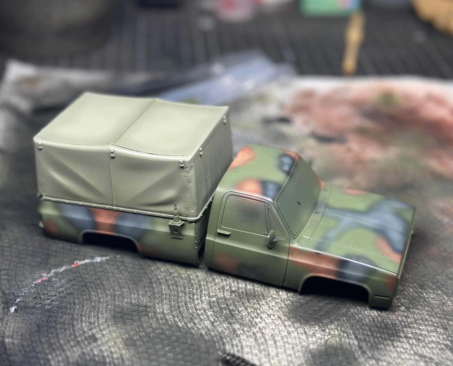 Camo is on. Might be a touch on the light side with the modulation but after a filter and weathering it should darken into a nicely faded truck