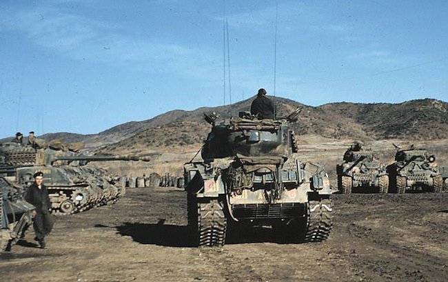 Top photo is the famous photo taken when our B Squadron had just taken over from C Squadron , showing B Squadron crossing the Imjin river July 16th, 1952. The second photo on the bottom is not a Canadian used Sherman.