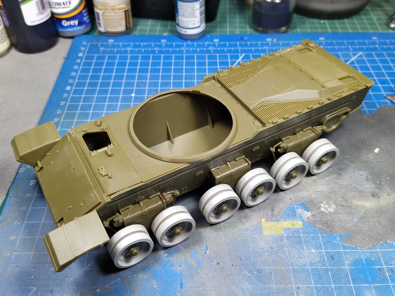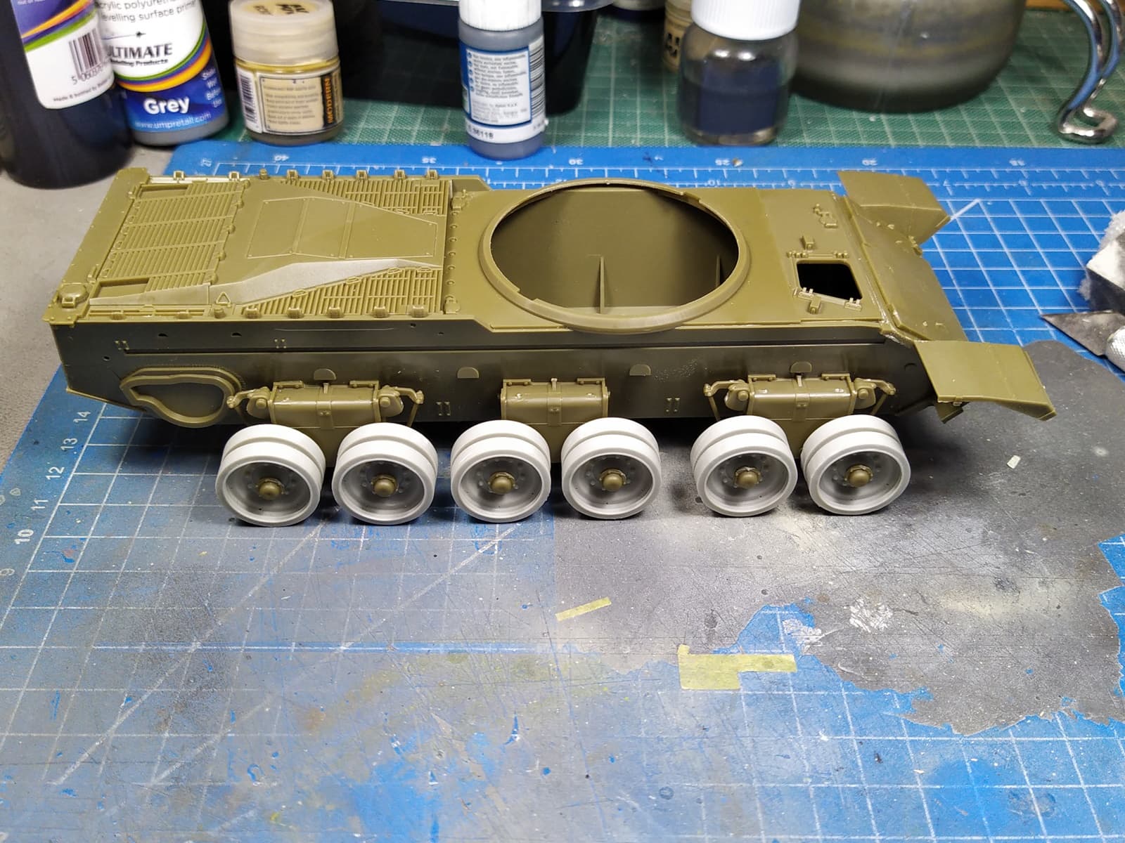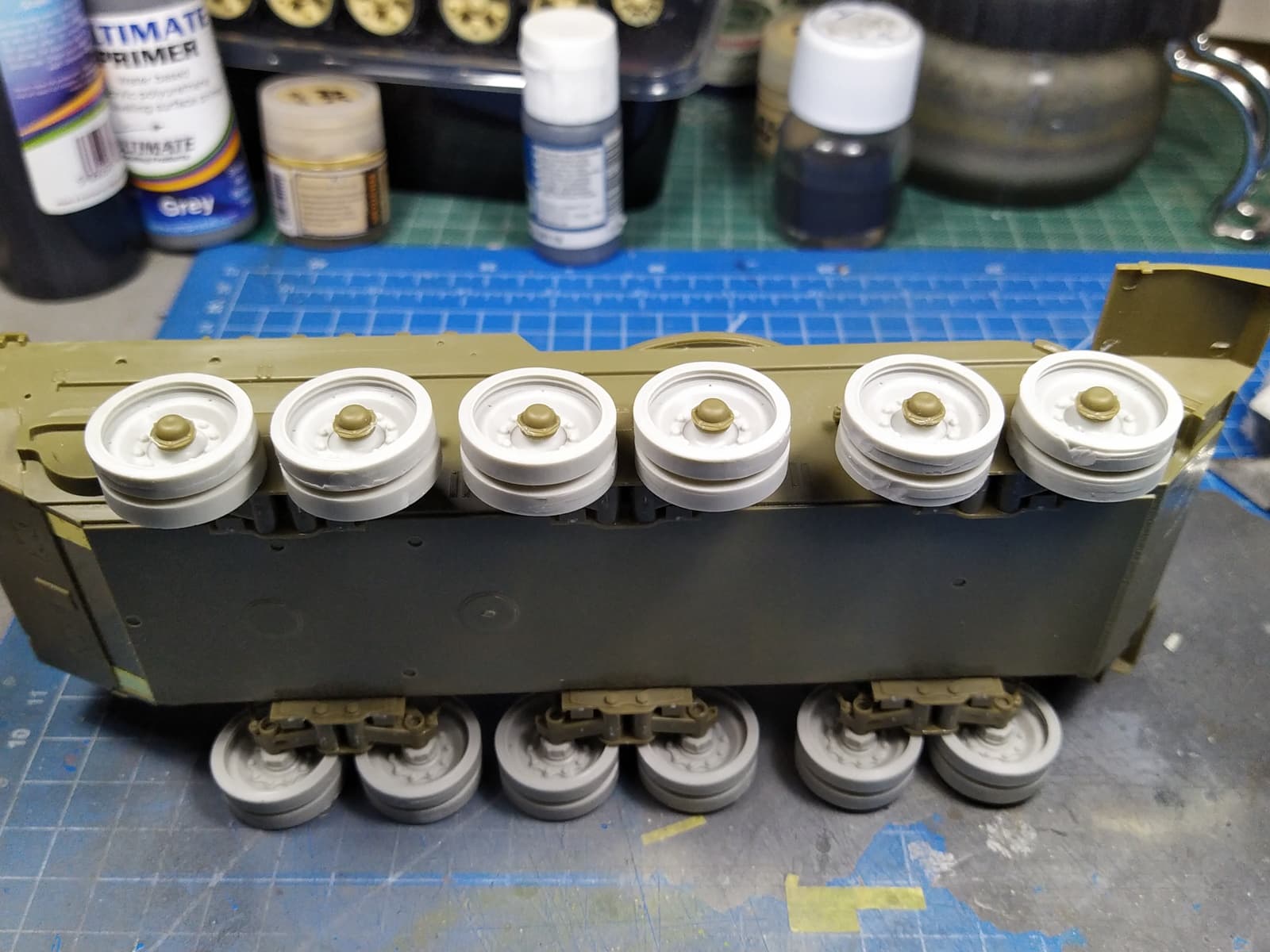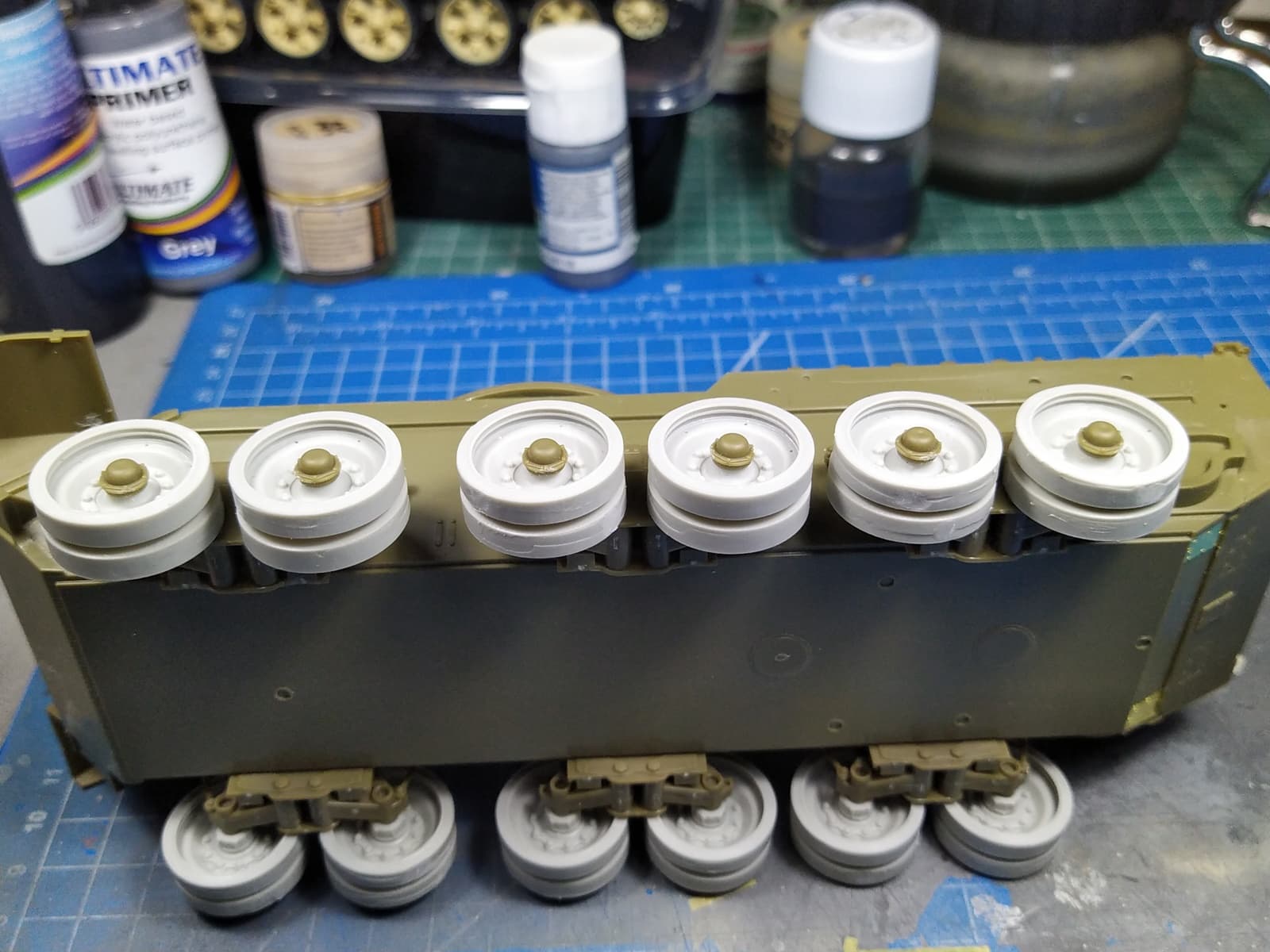 Panzerart wheels. Not the best casting but pretty easy to cleanup. There is a distinct mold line on most of the wheels, some are better some are worse. Photos prior to final sanding and cleanup.