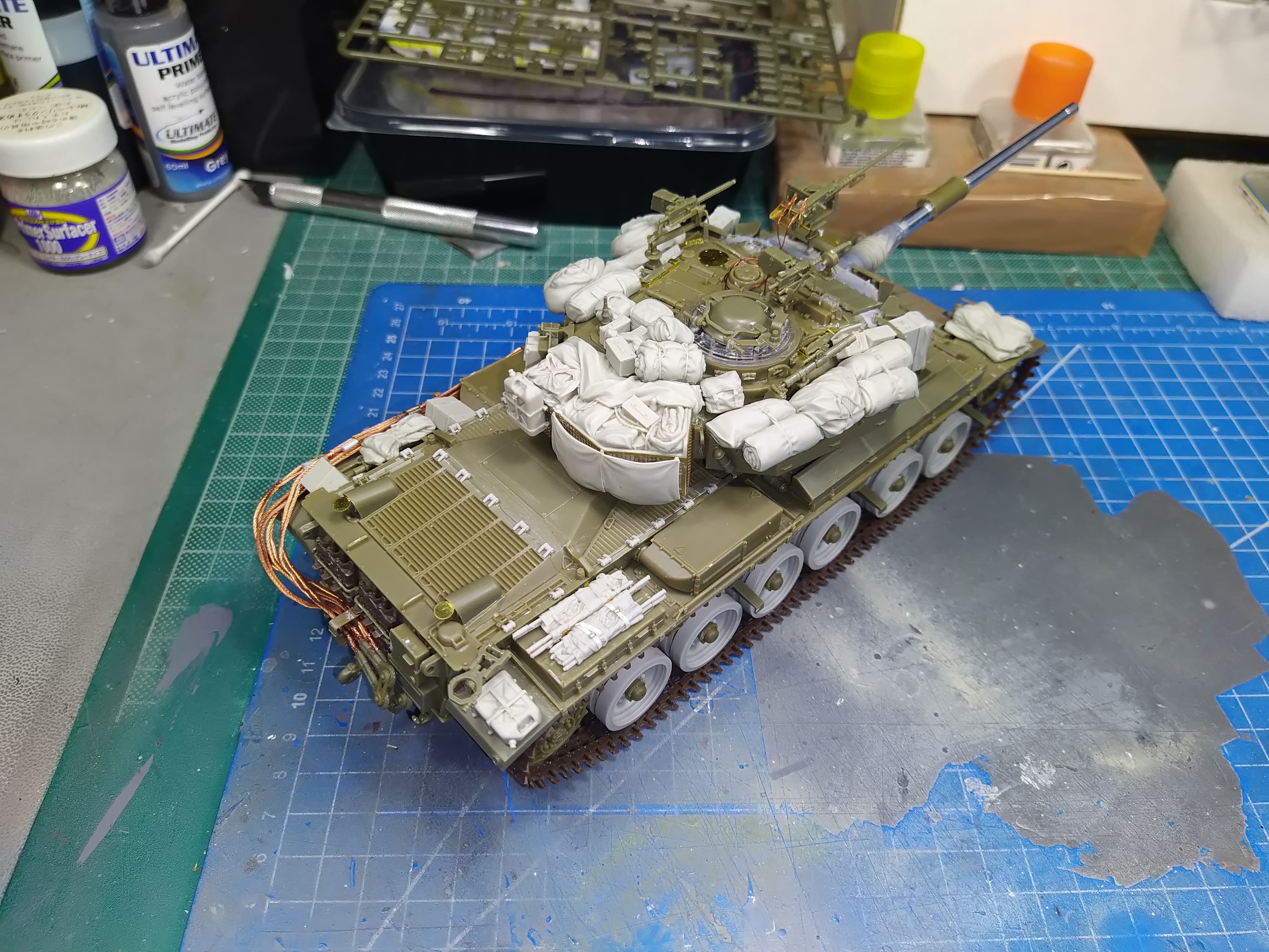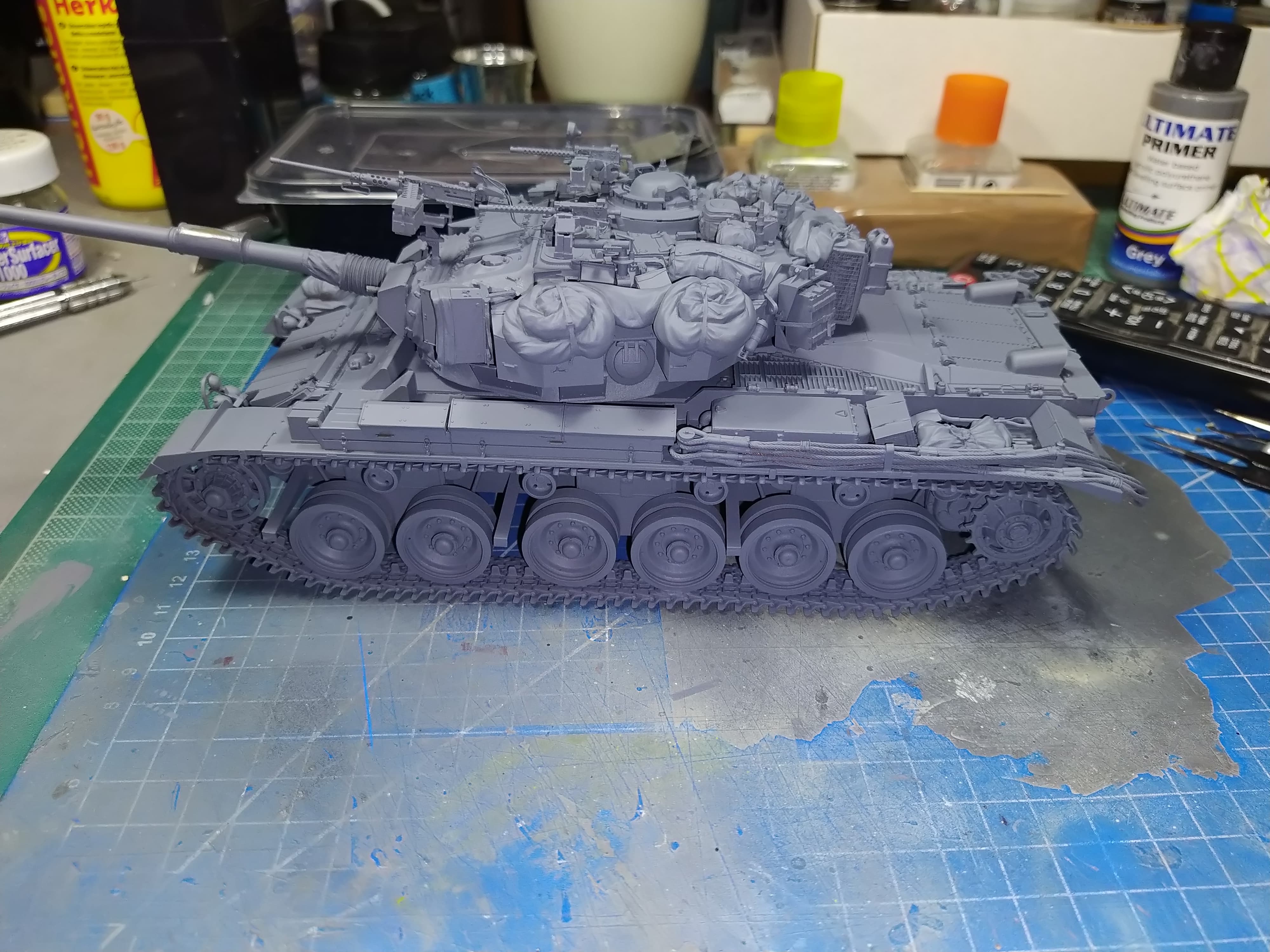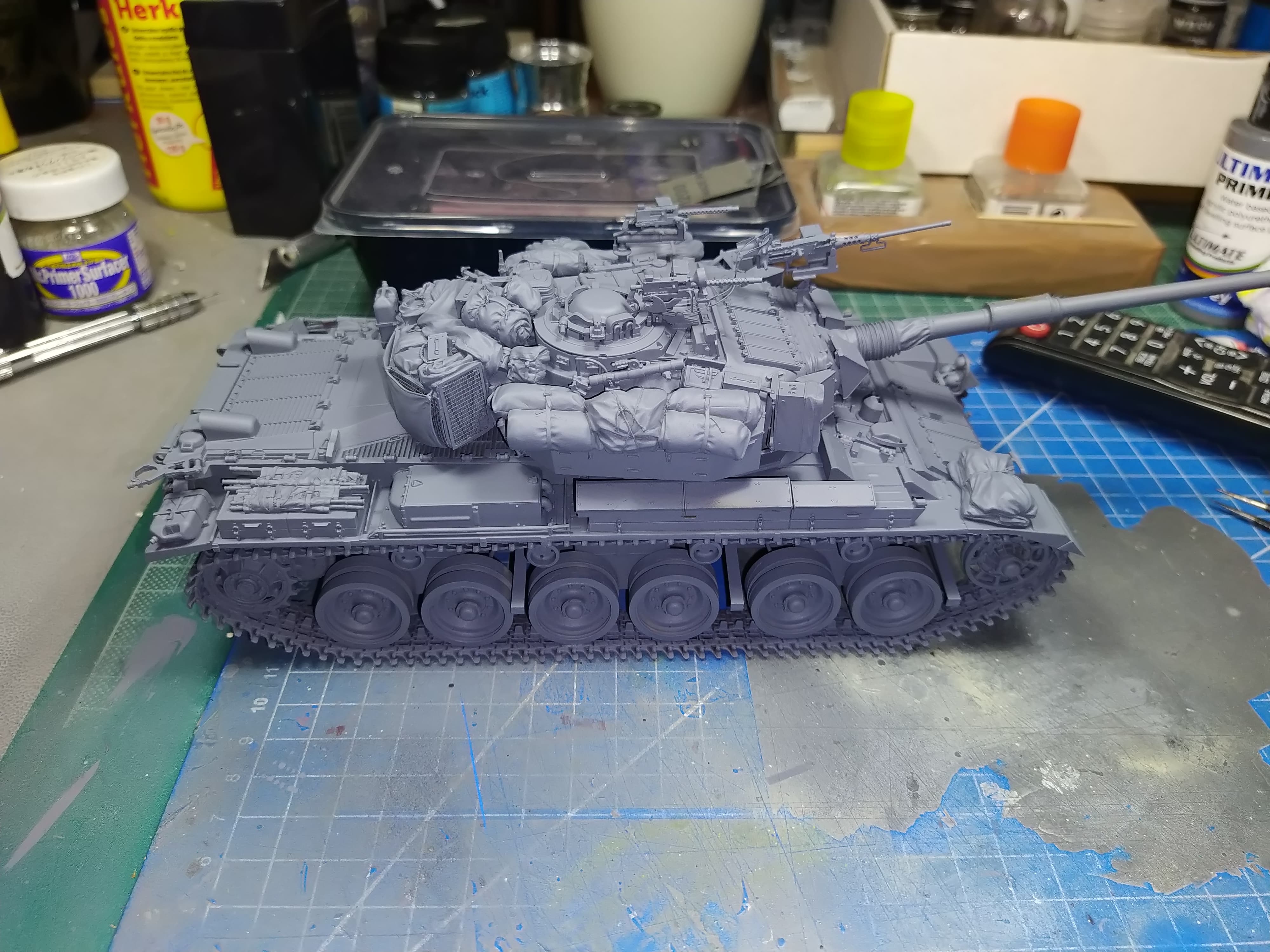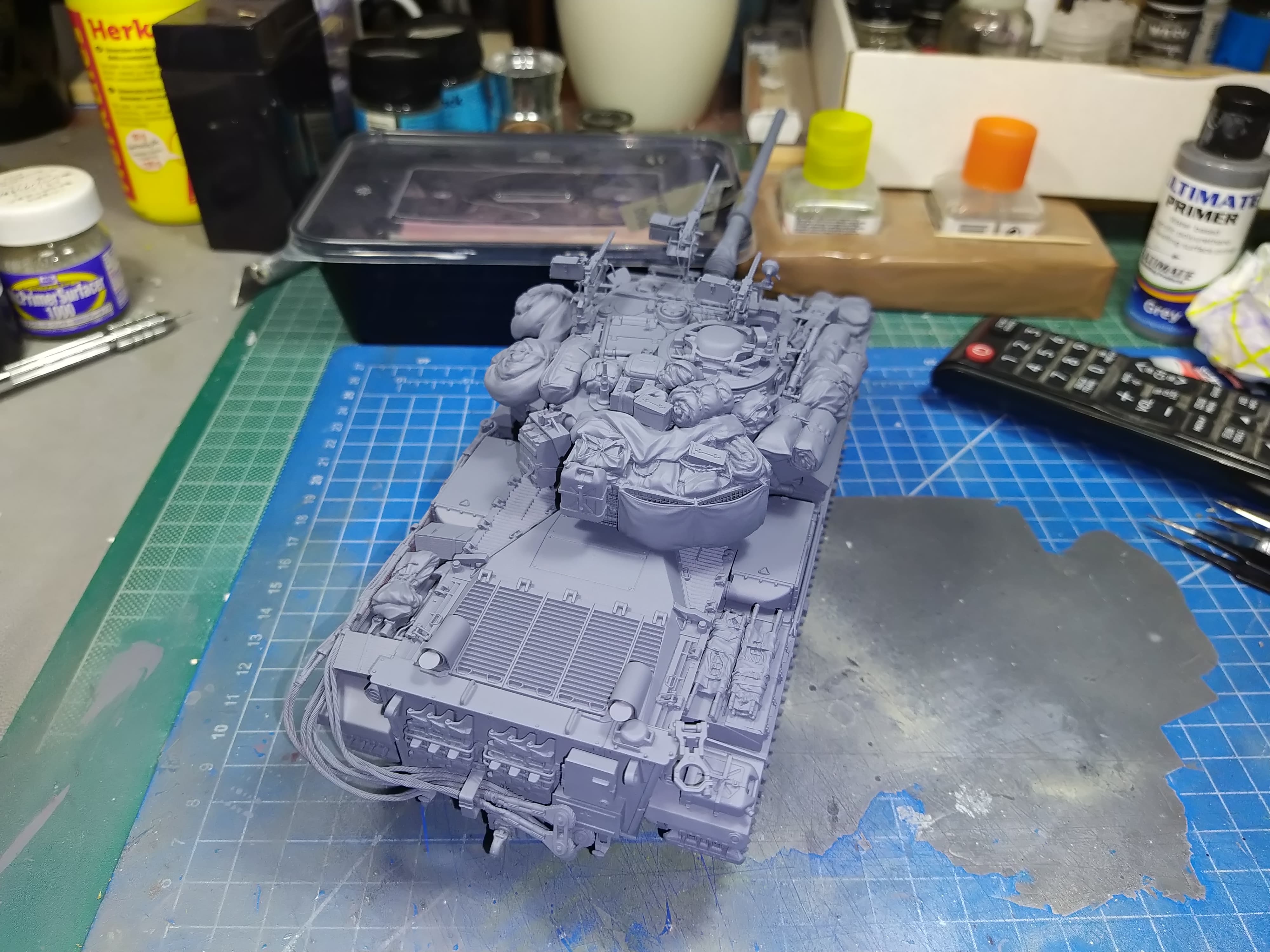 Almost ready for primer. Small details here and there missing. I am also contemplating if I should add more stowage on the hull or not.