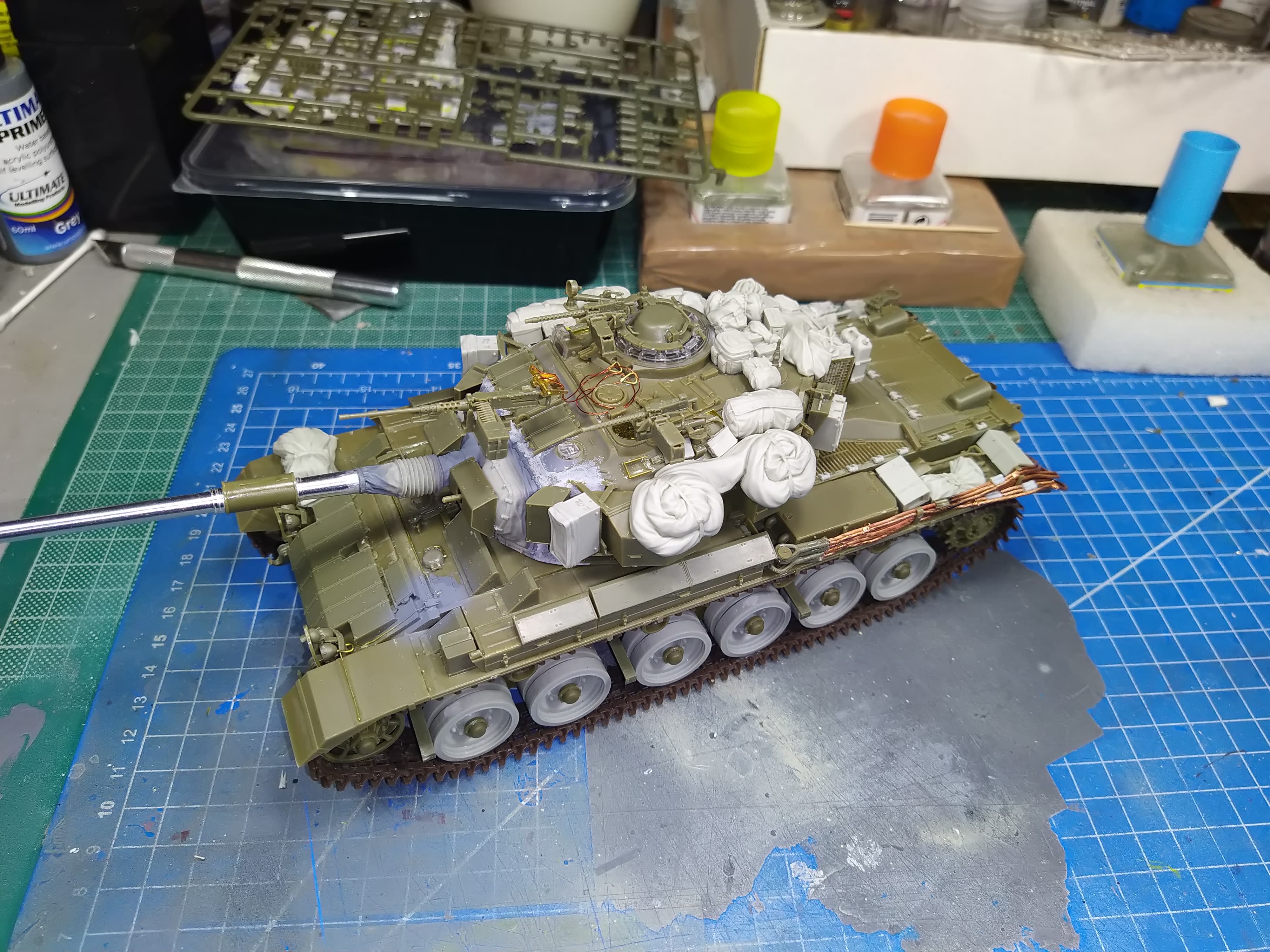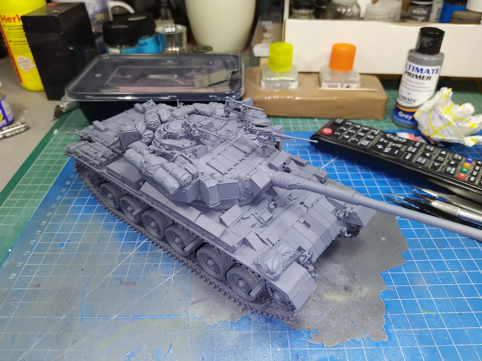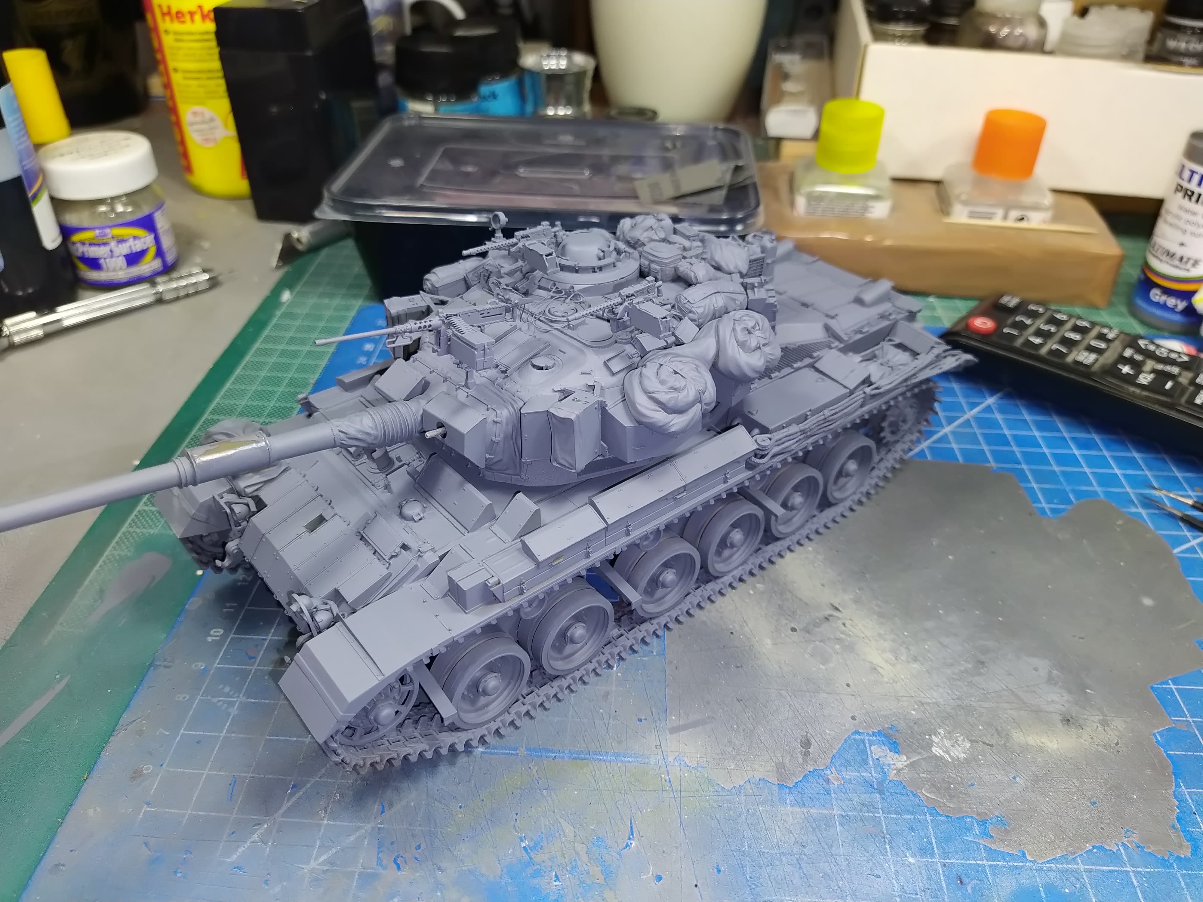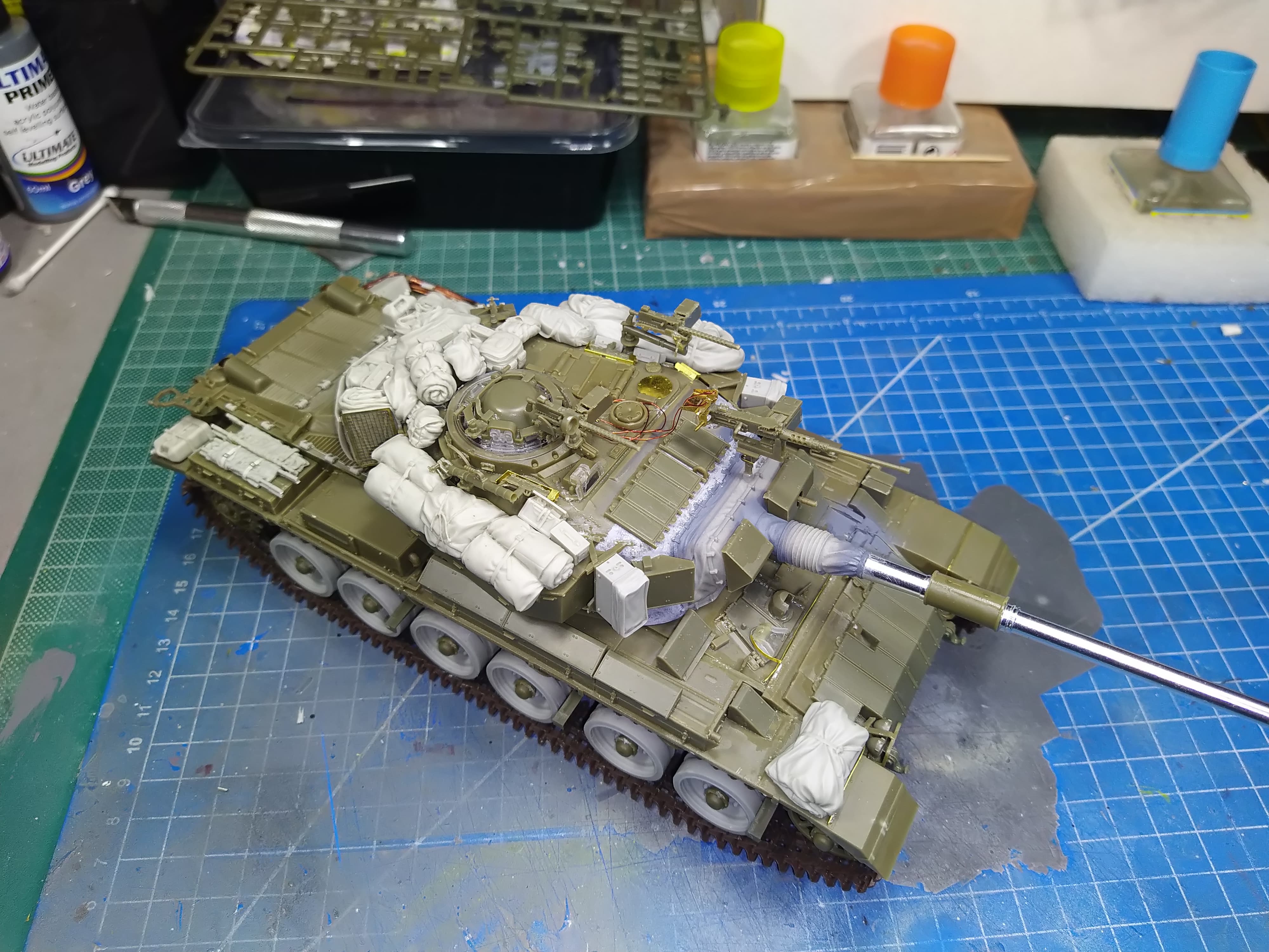 Almost ready for primer. Small details here and there missing. I am also contemplating if I should add more stowage on the hull or not.