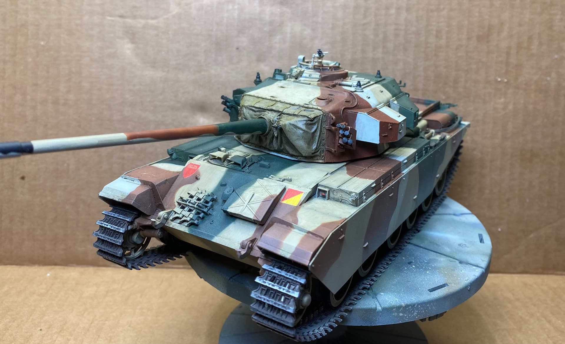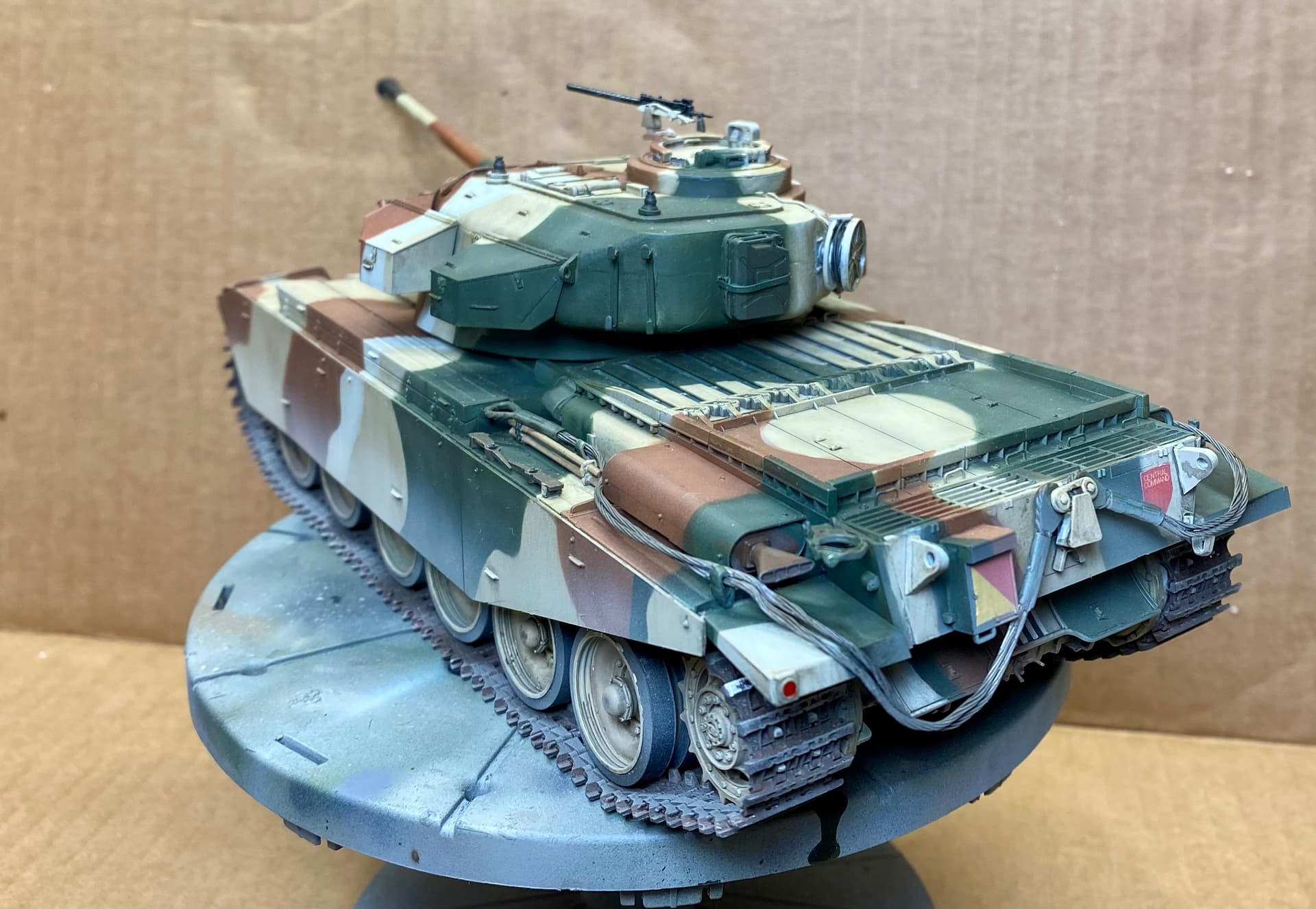 Centurion Mk. 5 in the short lived Canadian 4 tone camo scheme. Marked as a fictional training vehicle assigned to Central Command