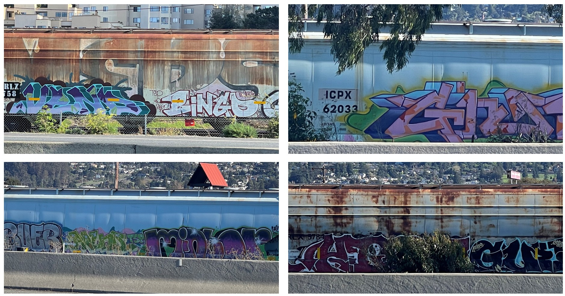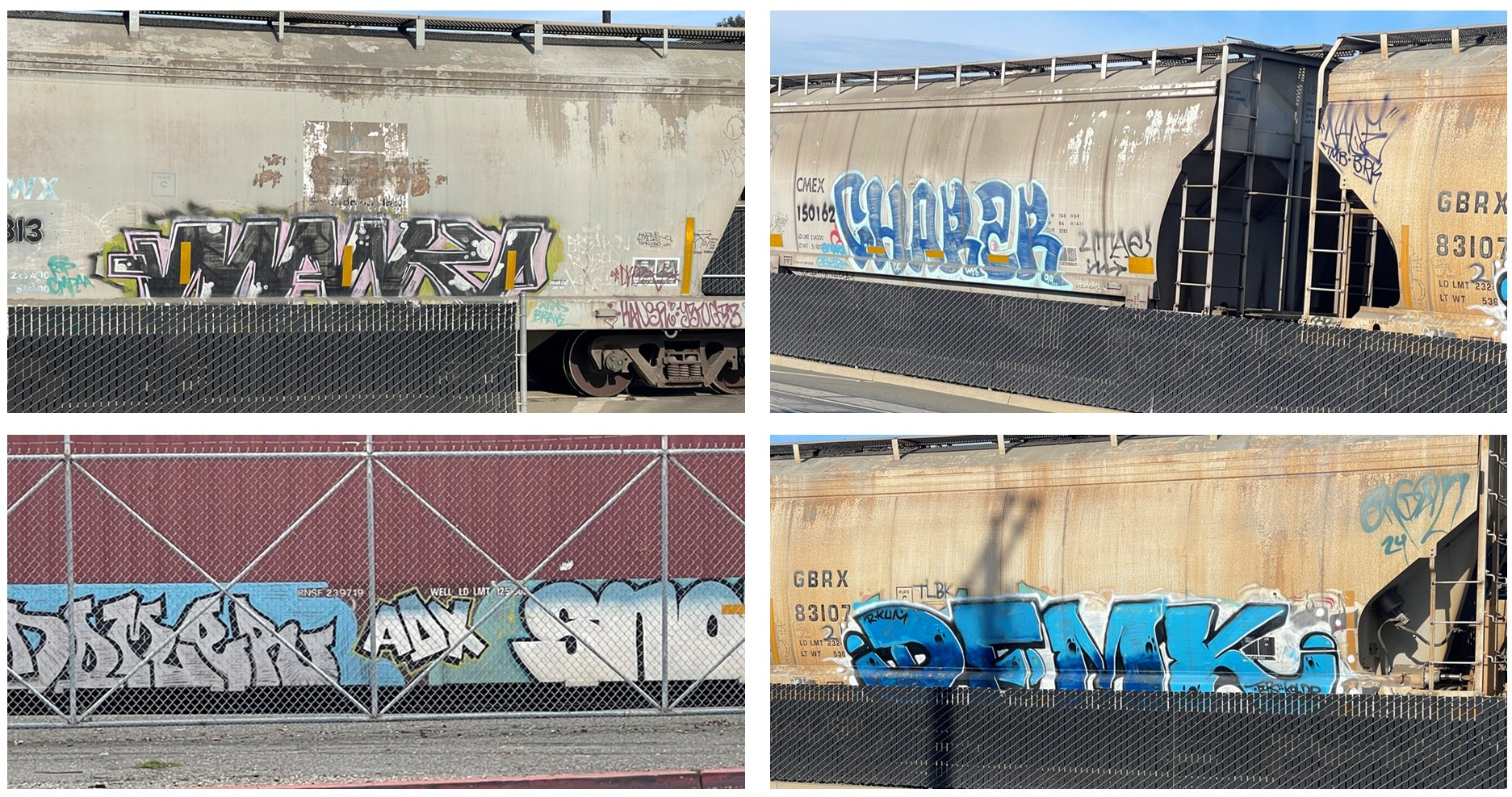 Note a couple of these have evident rust, and some pretty elaborate graffiti - and these: