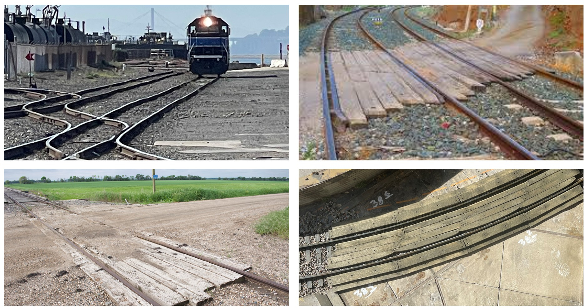 @Uncle-Heavy hi Robin, well, no. This project is using typical freight rail with a (generally) standard cross section (in the US anyway) as opposed to light rail/tram tracks which are lighter and use different cross sections. The light rail tracks have different sections for unique applications, like, as you note, running in cobblestones, asphalt, or over sleepers. For this project, it’s regular rail over wood sleepers, with wood being used to make an at grade crossing: