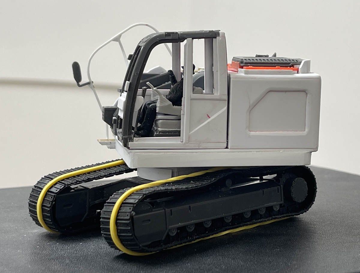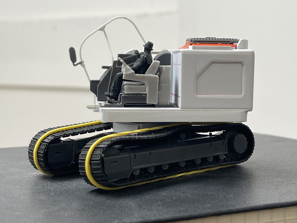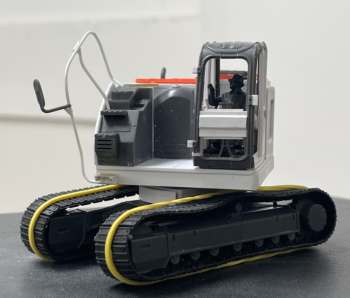 The Hasegawa kit comes with some nicely detailed parts, which served well for this conversion. They required a lot of cutting and filing to be useful, but they do the trick. The operator was supposed to be the locomotive engineer, but he’s now destined to be working this instead. He’s pretty nicely done, and served as a good template for making his work area. It’s remarkable how well this worked out.