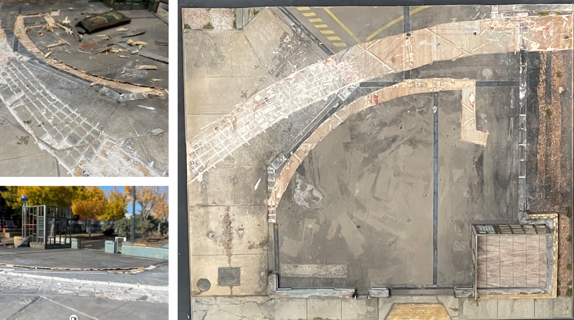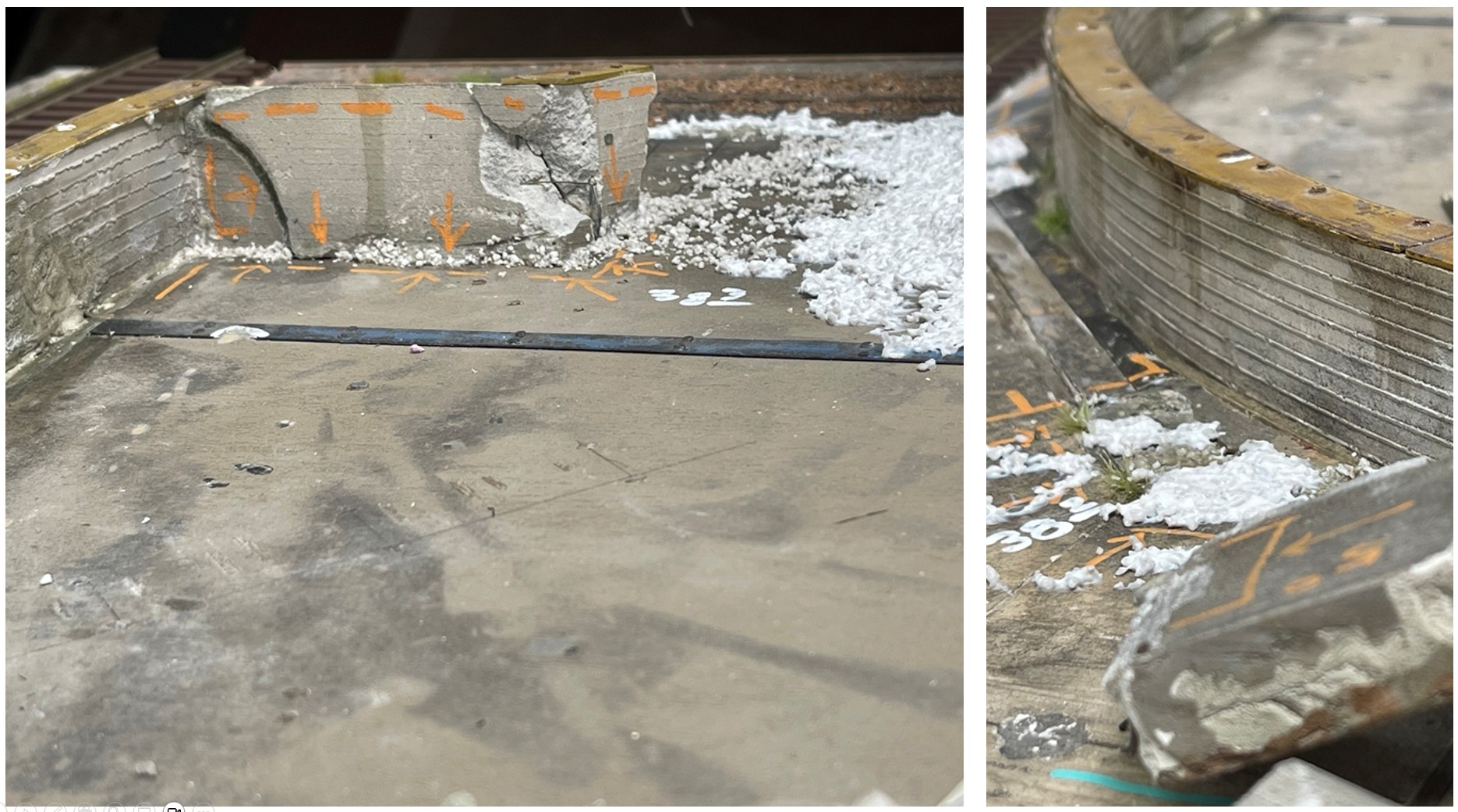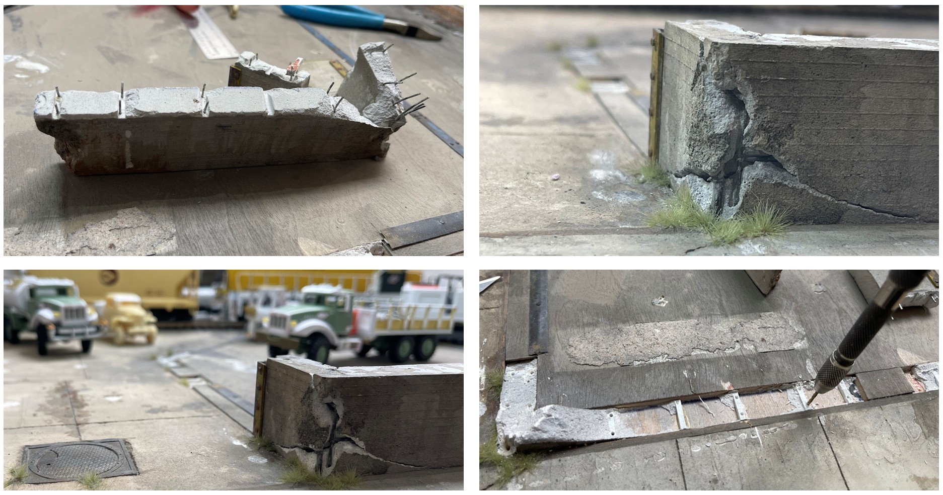 The good news is that this method of construction is pretty strong, as while I did remove the foundation from the base, the damage done was relatively minor. The less good new is that it was not easy plugging this back into the base. I used a lot of rebar, which meant there were a lot of holes and segments of wire to get into alignment, and glue back together.