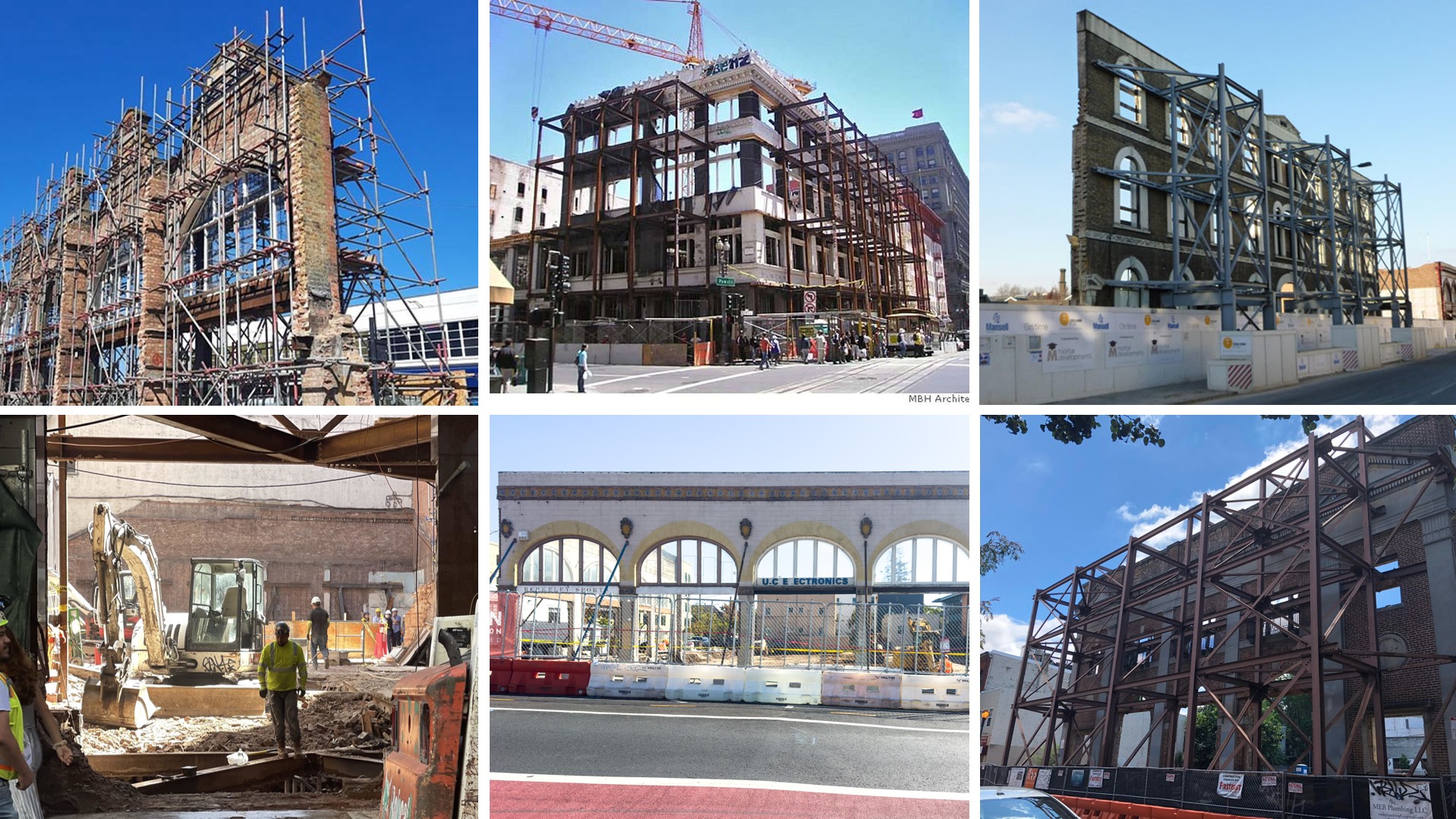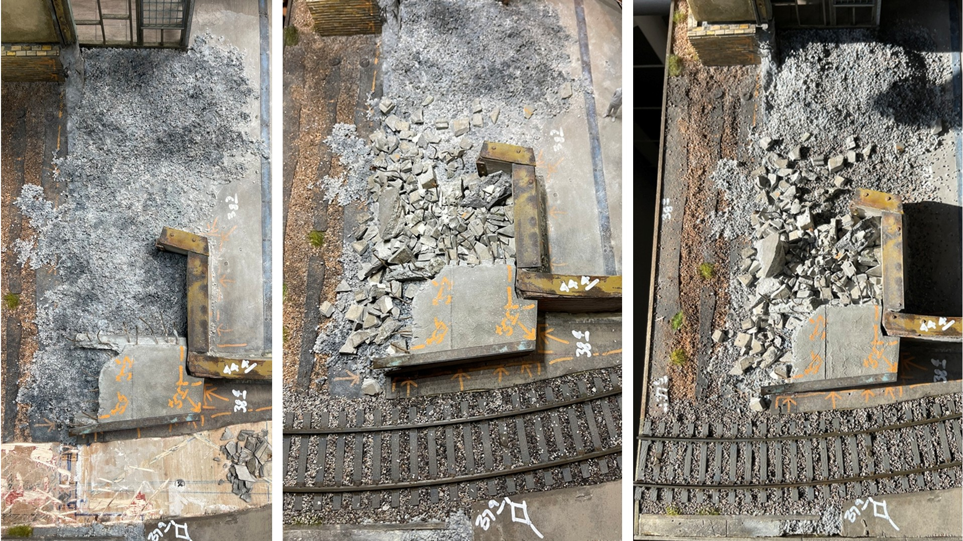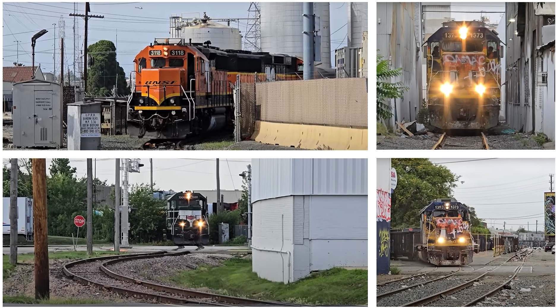 Oh what a treat! a train, heavy equipment, demolition, and some interesting architecture! All of it!