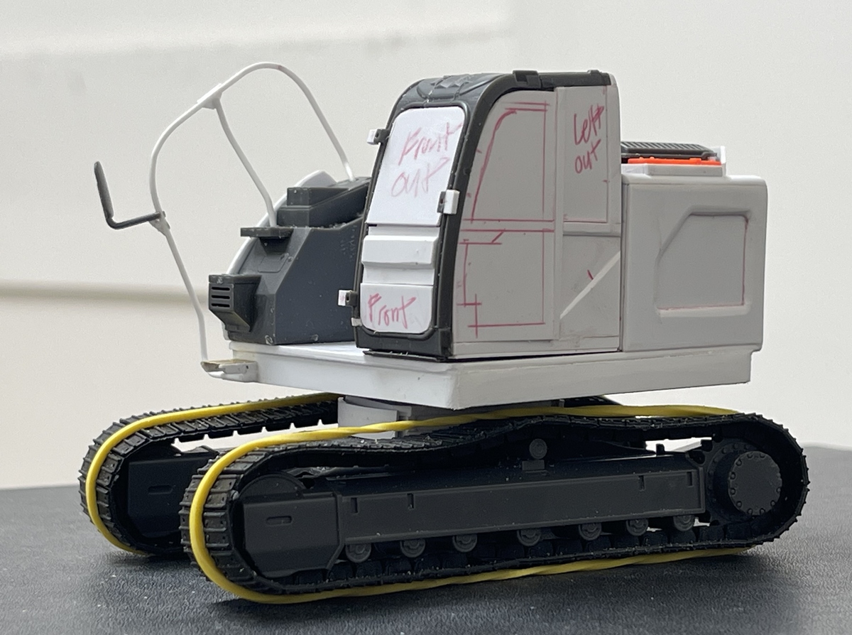 To make this, I started with the cab, as it is has a minimum spatial requirement to fit. As such, the seat was cut up to fit the cab: