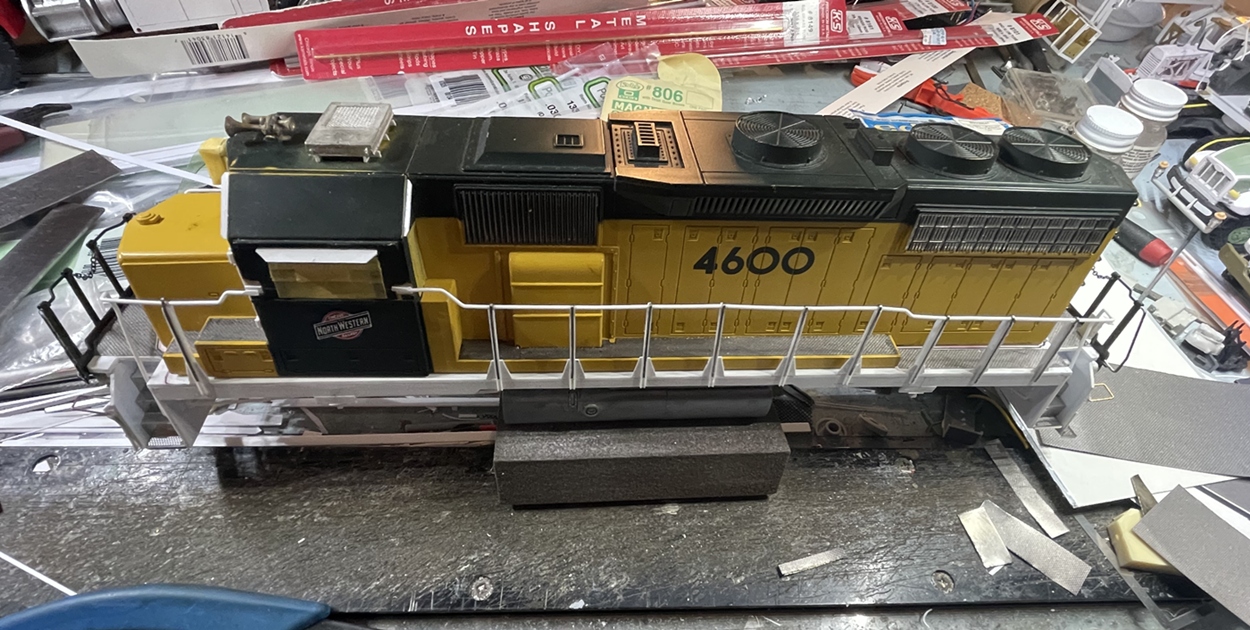 Brace yourself - yes, I am actually showing work on a train! @18bravo, Rob, I didn’t forget your comment about decking, just hadn’t gotten around to it just yet, but as I had some time today, the GP now has some deck plate: