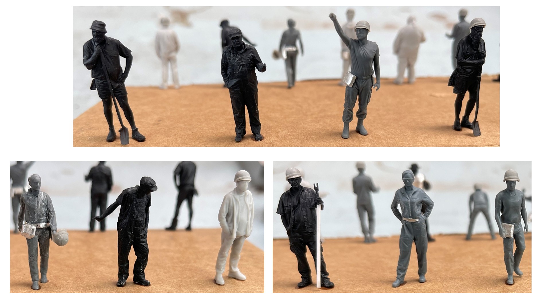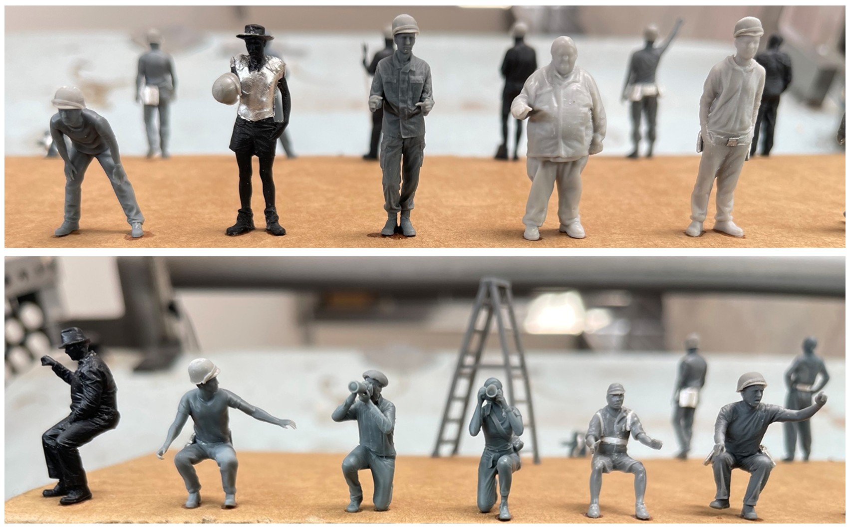 Some figures got some changes and others pretty much out of box. You’ll note many are wearing WWII army helmets, which is simply as close as I could get to a normal hardhat - I can live with the discrepancy! Others received tool bags, and a few received cutting and reworking body parts. BTW, doing this in 1/48 scale is less pleasant than in 1/35+ - quite a challenge!