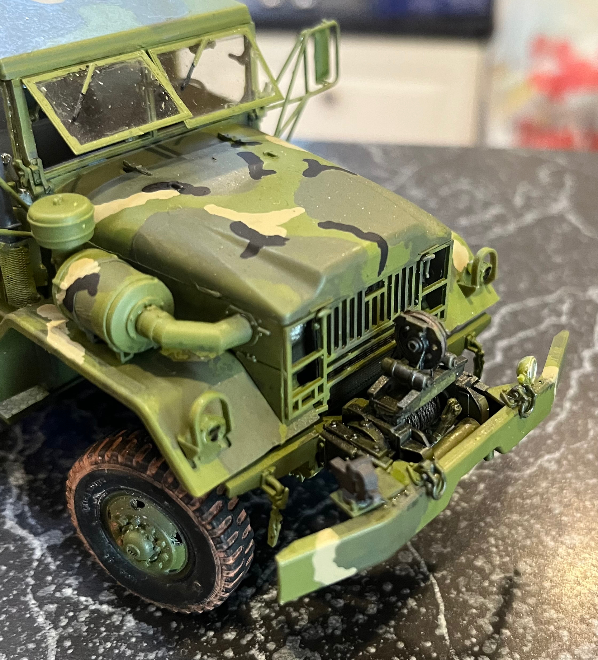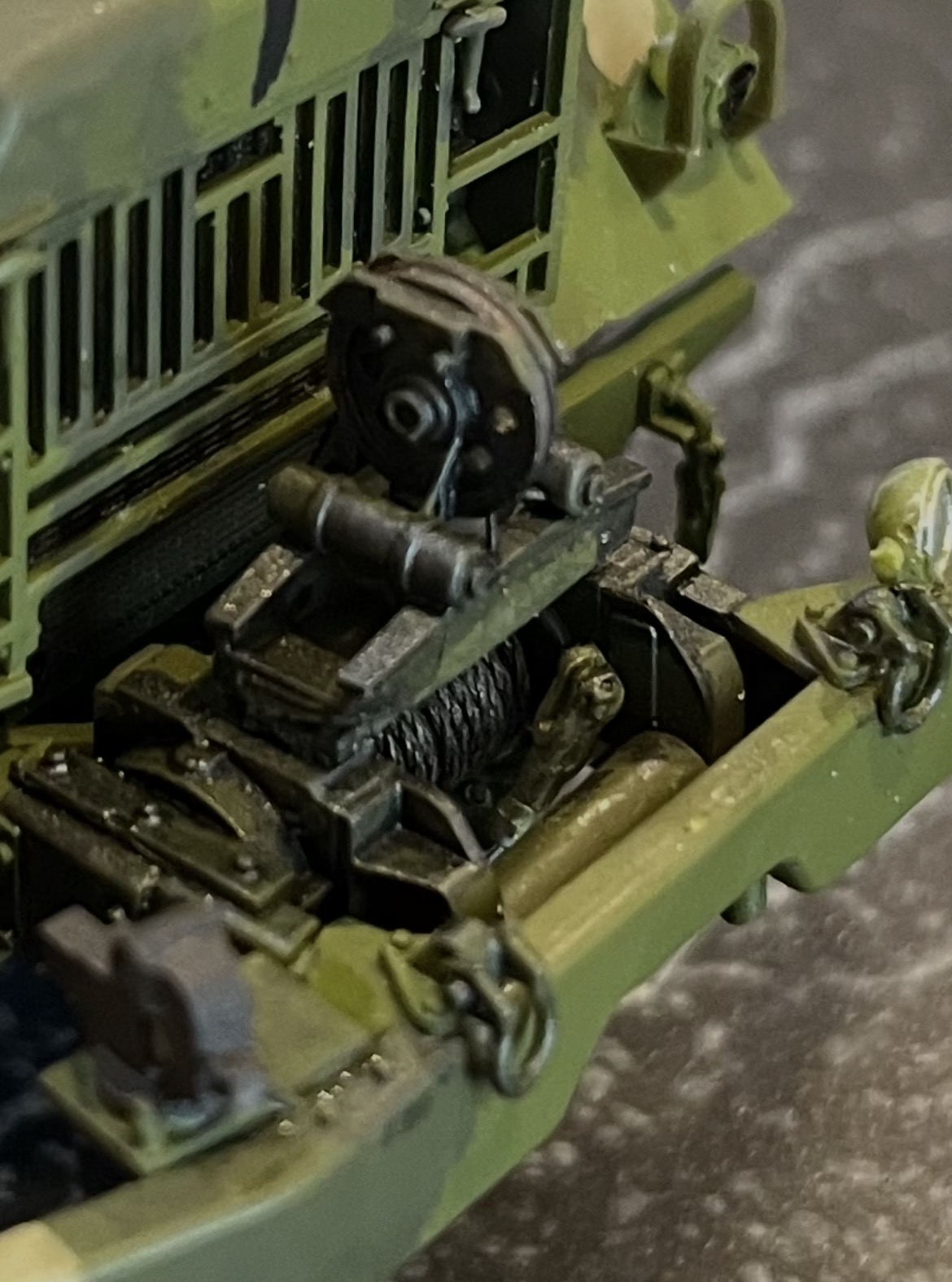 Some work on the front and back winches, finished the camo and weathered the crane deck.