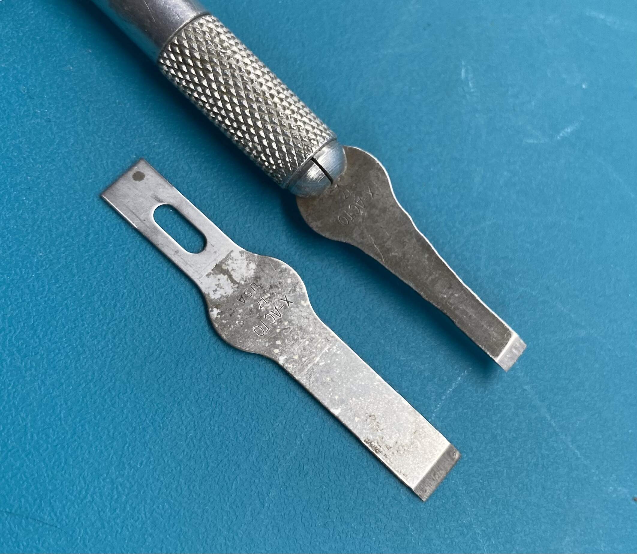 I’ve used ground down X-acto blades for years. Modified a #11 with a broken tip into a small chisel blade and cut down a #17 into another slightly larger like Jimbo did above. Had to buy a couple of cheap handles.