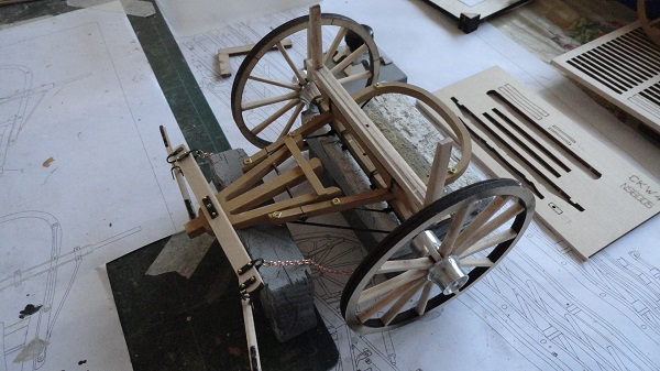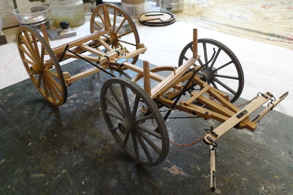 the reach pole with the king pin test fitted together with all the main components of the wagon chassis.