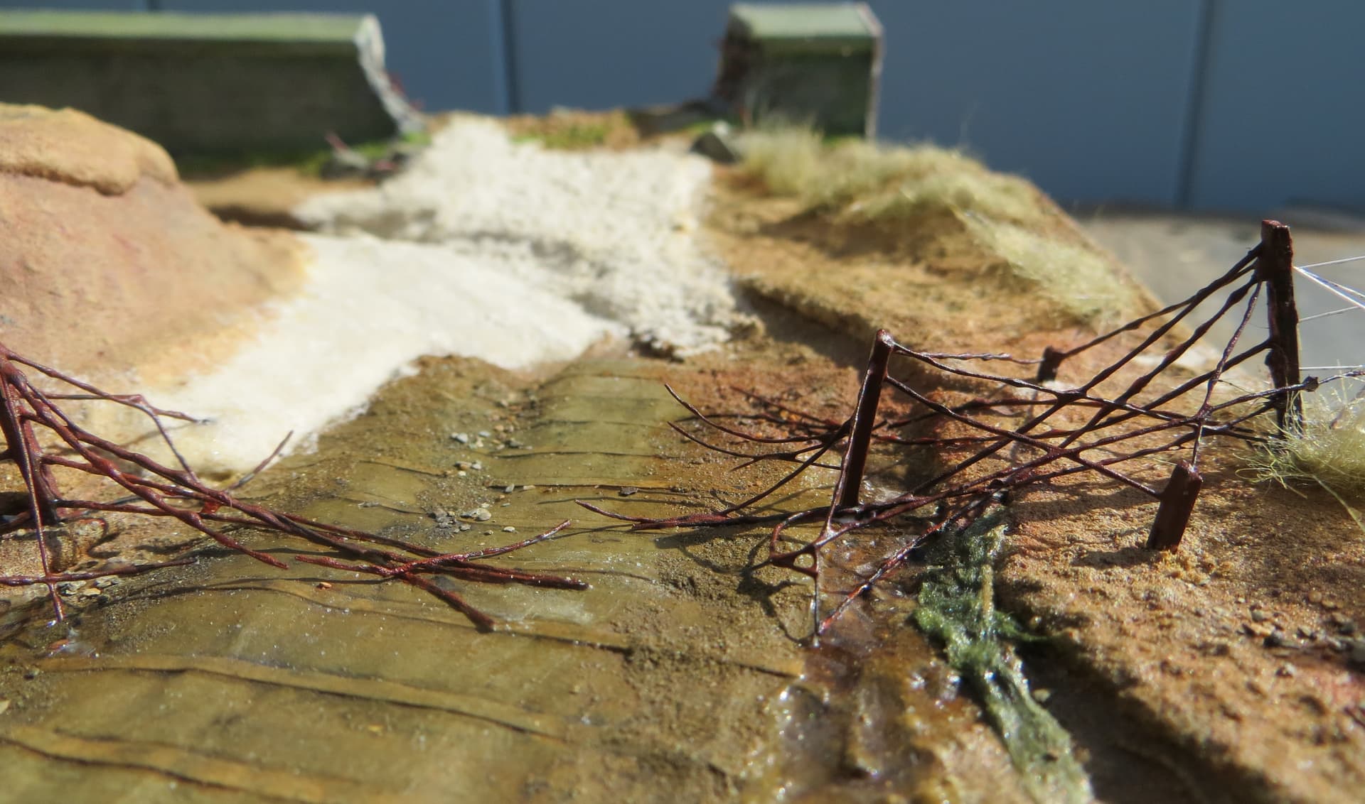 I’ve also had a go at adding some barbed wire obstacles using stretched sprue…thanks for the idea Ryan,
