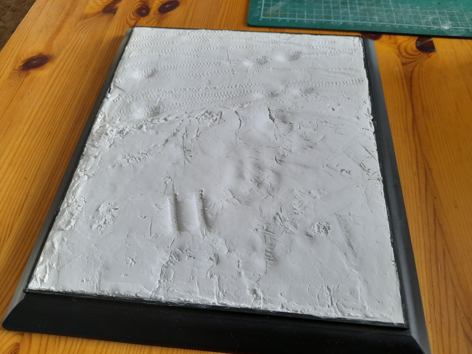I made some progress last night, adding Polyfilla to the base (a Ferrero Rocher box - the real hardship is having to eat the contents first!) and sculpting the beach complete with tracks and locations for the DUKW. It’s a bit thick, so may take a few days to harden fully…