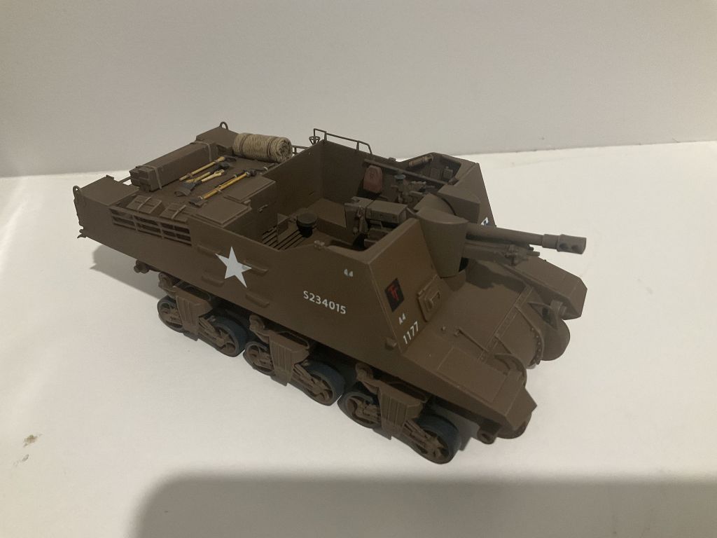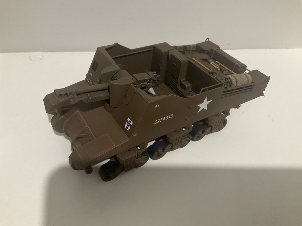 I finally got some Flat Coat paint, but it has just rained all weekend here. Far too much moisture in the air for a flat coat. So the Sexton is still not finished. I have decals down, tracks painted and all the stowage painted ready to be fit, I just need to flat coat and weather it and fit the tracks.
