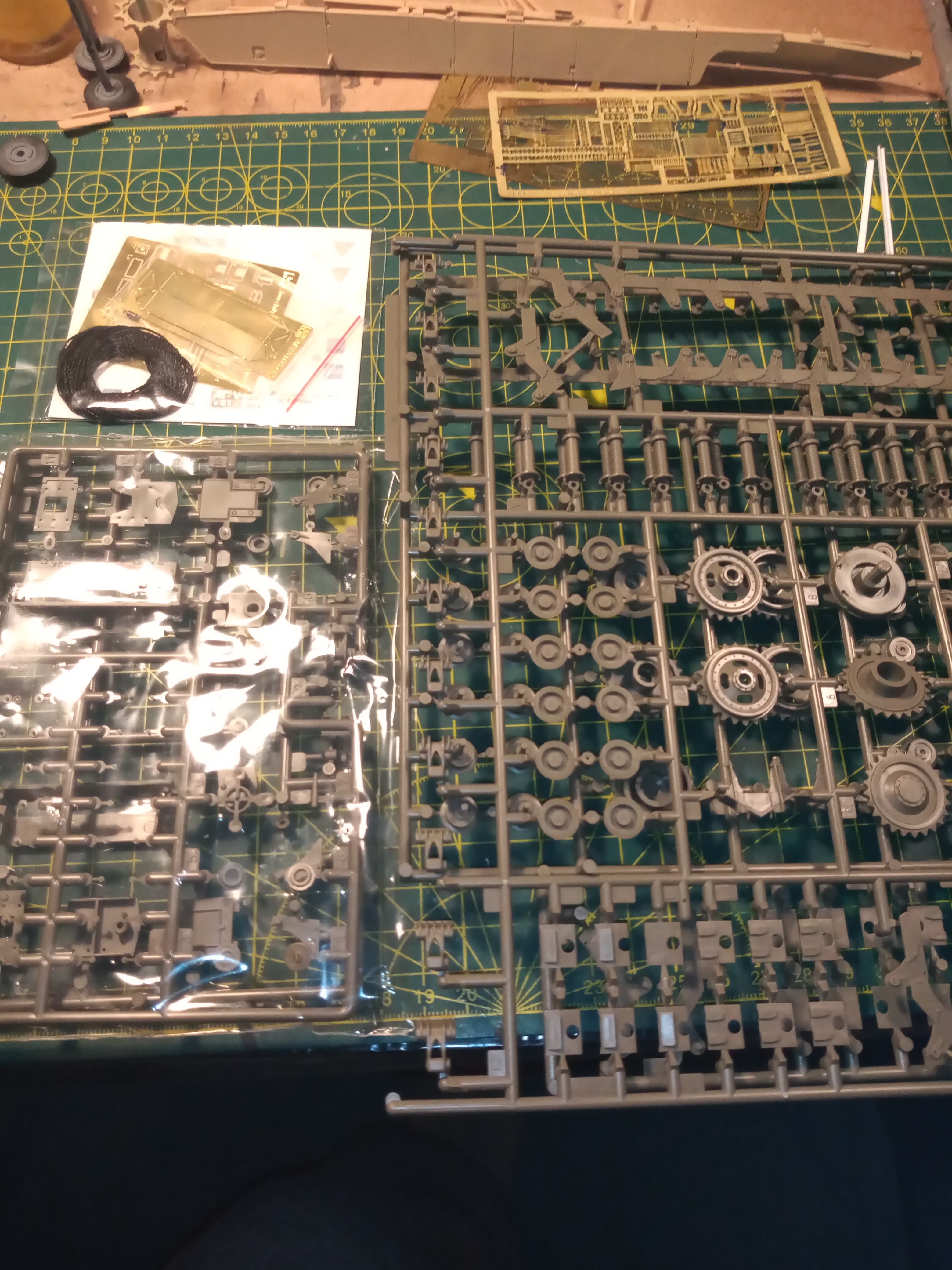 Just did a quick part count for the side I’m working on… For just this one running gear unit, there 115 parts to do before you join it to the lower hull…