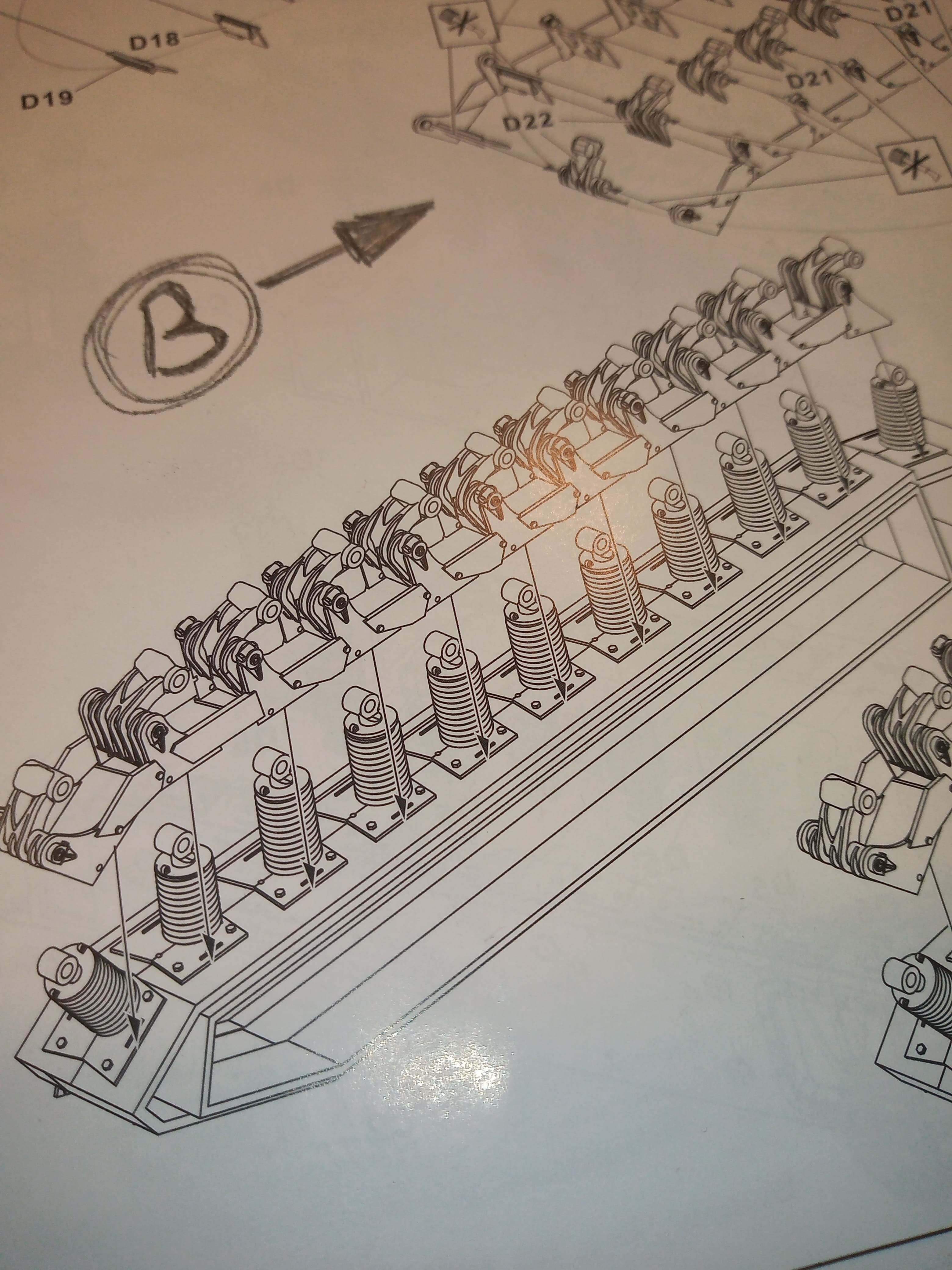 Started off on the running gear housings. They consist of the metal springs over plastic struts with moulded on inner springs …